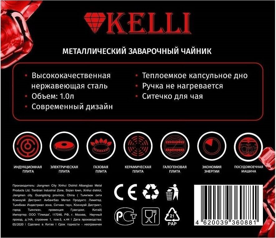 Комплектация: ситечко для чая, крышка для чайника, чайник
