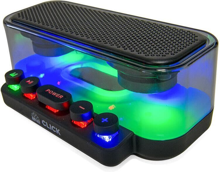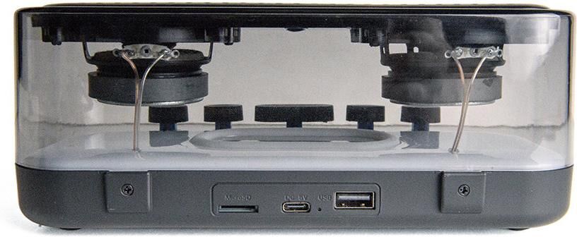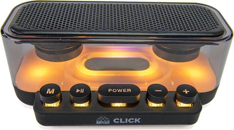 Портативная беспроводная колонка В52 «Click» ярко выделяется среди других своим дизайном. Полупрозрачный корпус, разнообразная подсветка и кнопки, похожие на клавиши печатной машинки. При нажатии они создают приятный звук: «Клик». Колонка оснащена двумя динамиками мощностью 5Вт каждый. Емкость аккумулятора 1800 мАч, что обеспечивает до 3 часов автономной работы. Для зарядки устройства подходит кабель с разъемом Type-C (в комплекте). Воспроизводить любимые композиции на колонке можно подключаясь через Bluetooth, а также с USB или TF-карты. В52 «Click» оснащен функцией TWS. Поддерживает прием радио. Отдельного внимания заслуживает подсветка. Многообразие цветов и режимов позволяет выбрать то, что подходит под настроение здесь и сейчас. Свечение одним цветом, в такт музыке, переходы от одного оттенка к другому – искать свой вариант занятие увлекательное Такая блютуз колонка станет достойным украшением интерьера и отличным вариантом подарка как для взрослых, так и для детей.