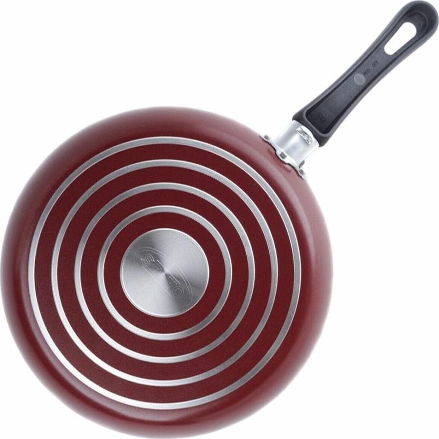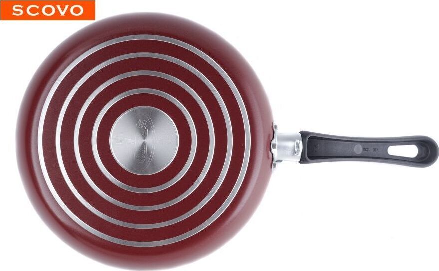Диаметр 22см. Крышка стекл. Основание алюминий 1,8 мм. Внешнее покрытие декоративное, цвет- бордовый. Европейская фурнитура. Быстрый и равномерный нагрев. Высокие антипригарные свойства. Подходит для газовых плит, стеклокерамических плит и электроплит. Можно мыть в посудомоечной машине.