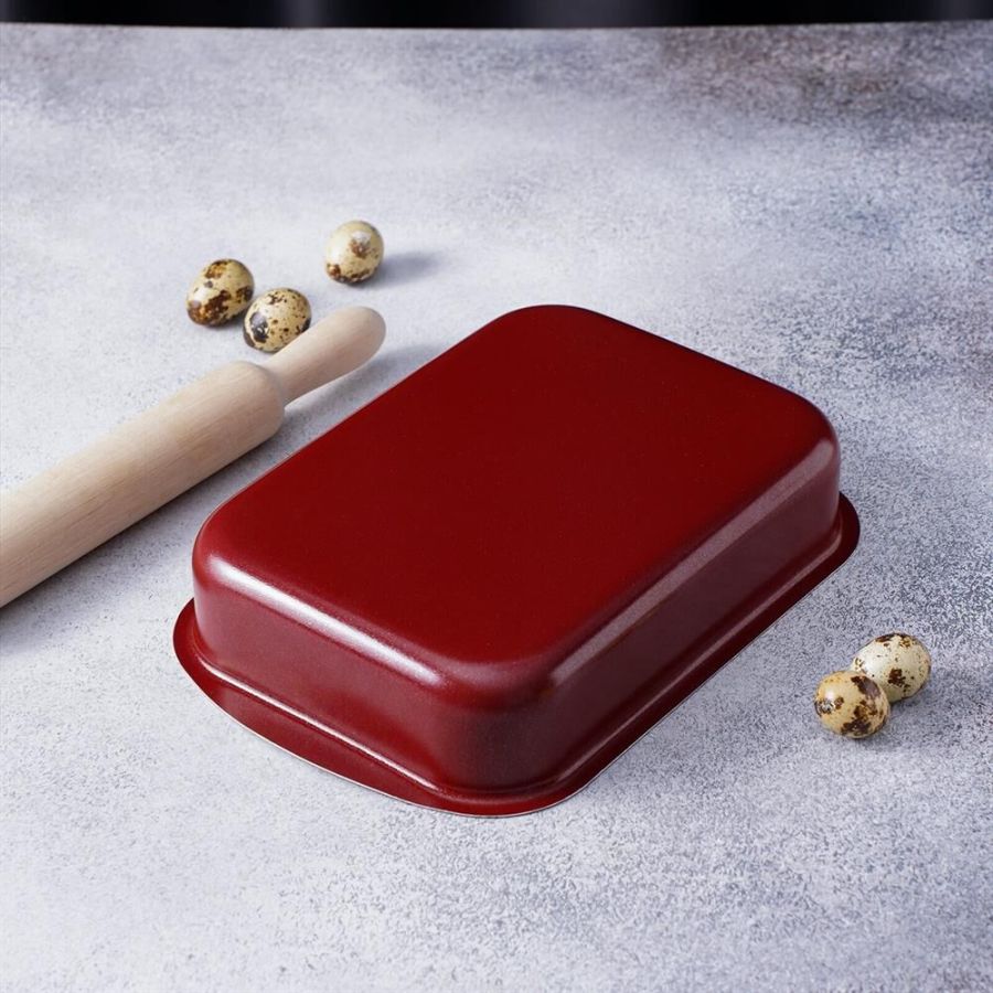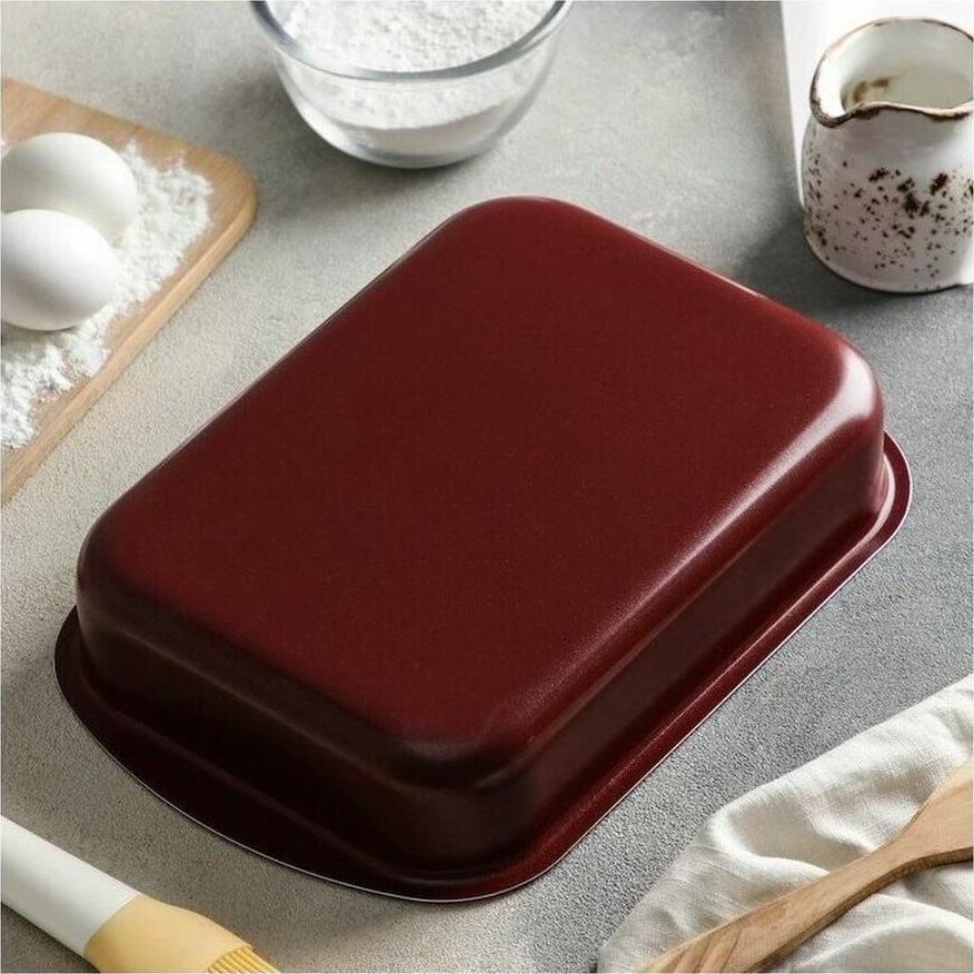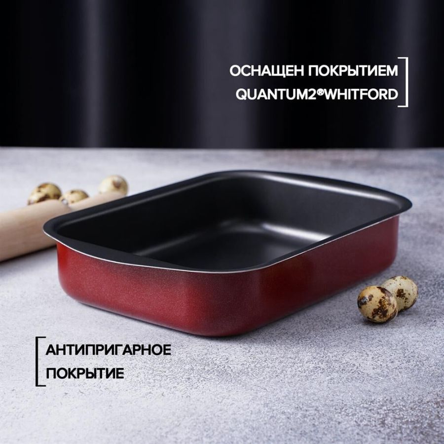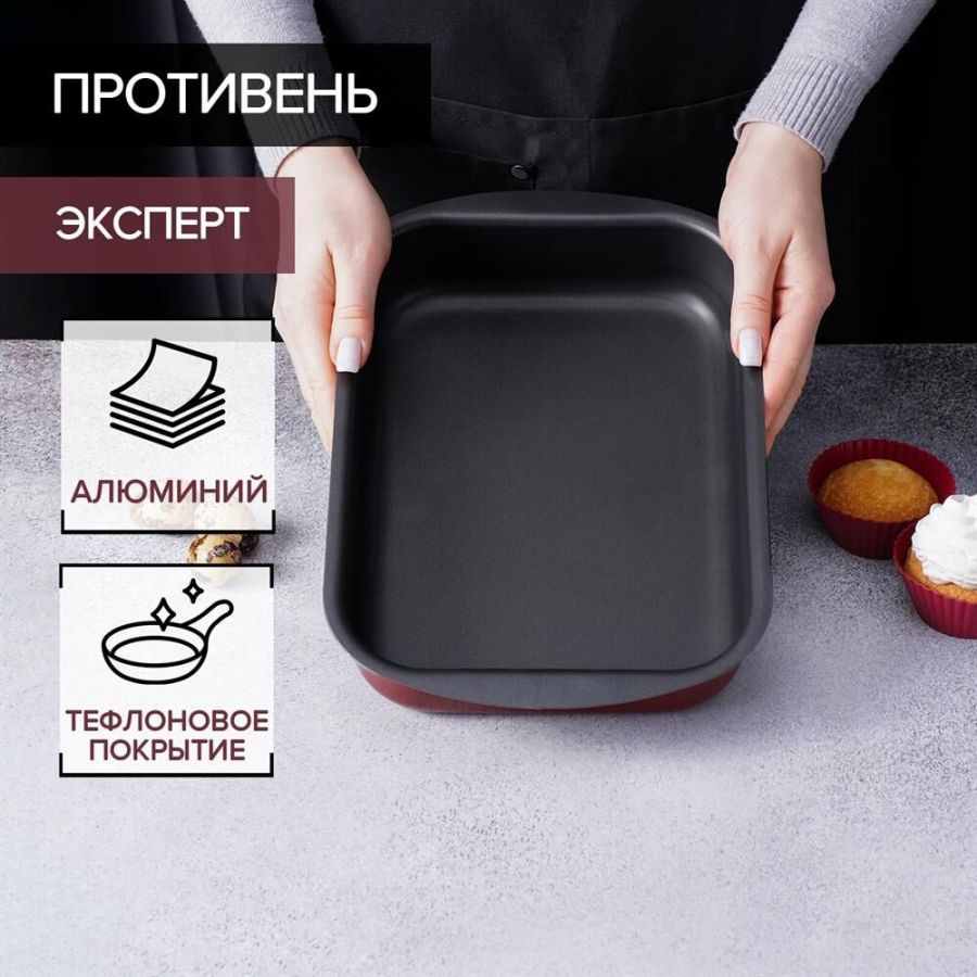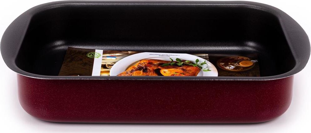 Размеры 290х200х50 мм. Основание алюминий 1,8 мм. Внешнее покрытие декоративное, цвет- бордовый. Европейская фурнитура. Быстрый и равномерный нагрев. Высокие антипригарные свойства. Толщина дна: 1.8 Толщина стенок: 1.8 Источник тепла: Газовая и электрическая плиты Тип упаковки: цветной лейбл Внутреннее покрытие: антипригарное покрытие Deko/Skandia Внешнее покрытие: антипригарное покрытие Xylac Whitford Ручка: бакелитовая