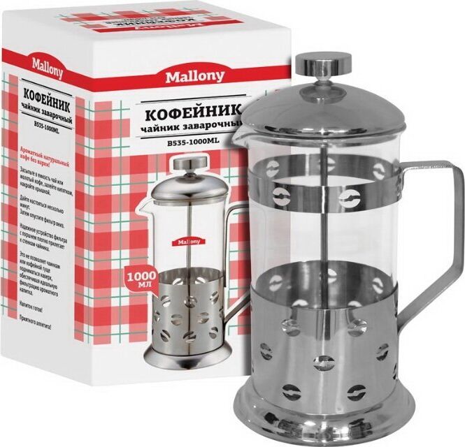 Тип Френч-пресс. Цвет Серебристый. Материал корпуса Металл. Объем 1 л.