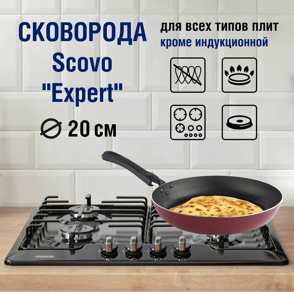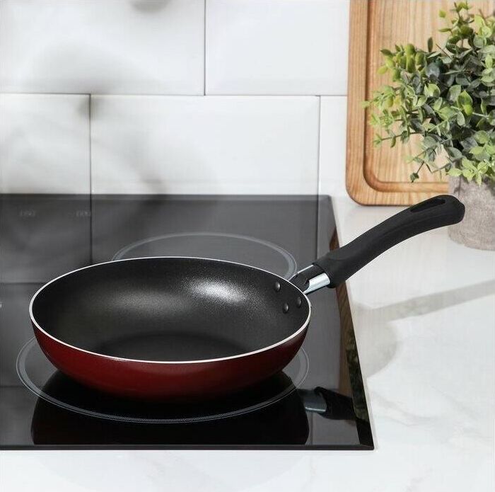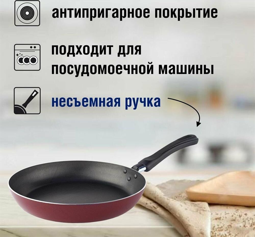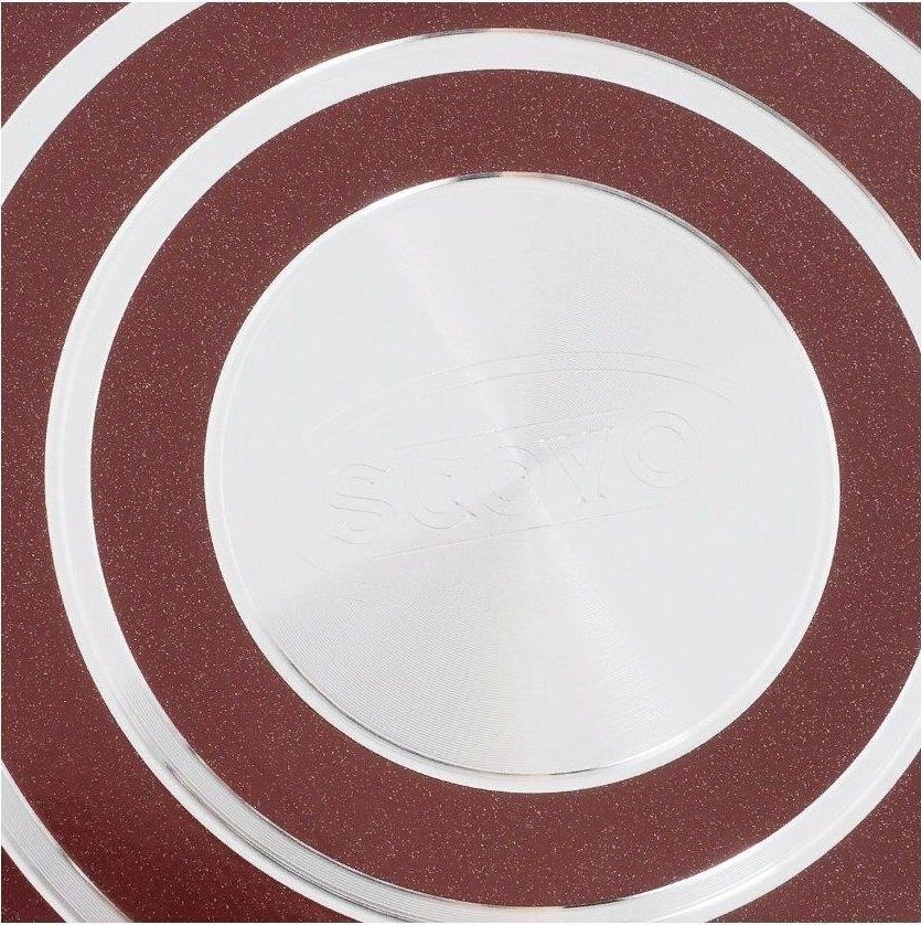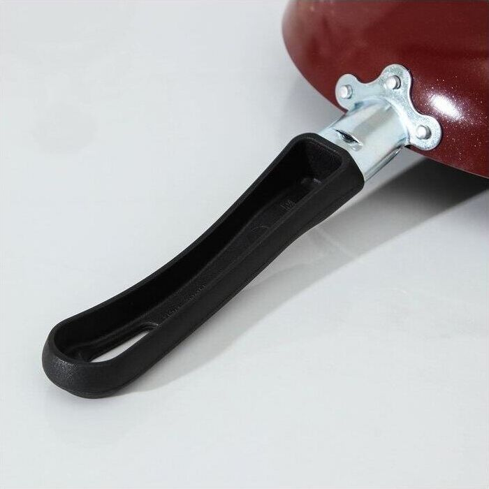 Диаметр 20см. Основание алюминий 1,8 мм. Внешнее покрытие декоративное, цвет- бордовый. Европейская фурнитура. Быстрый и равномерный нагрев. Высокие антипригарные свойства. Подходит для газовых плит, стеклокерамических плит и электроплит. Можно мыть в посудомоечной машине.