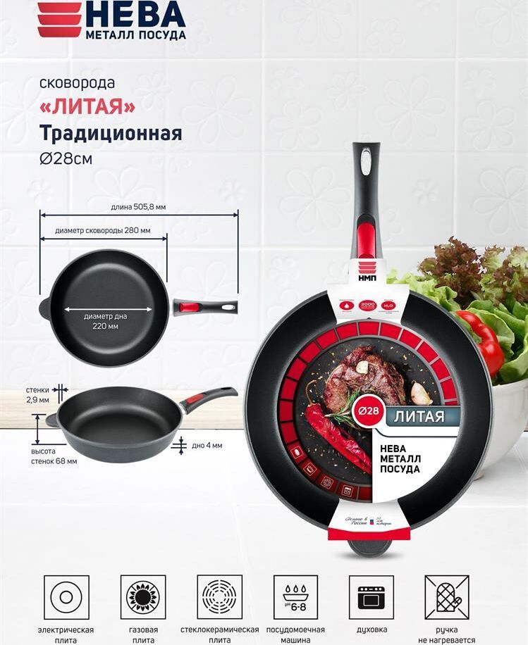 Комплектация: сковорода - 1 шт , Антипригарное покрытие: Покрытие на водно-кремниевой основе