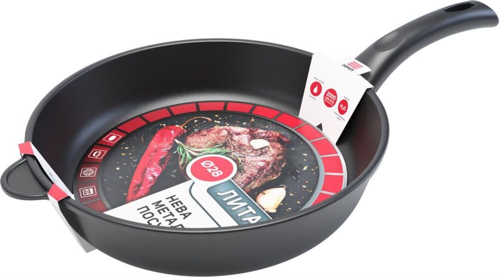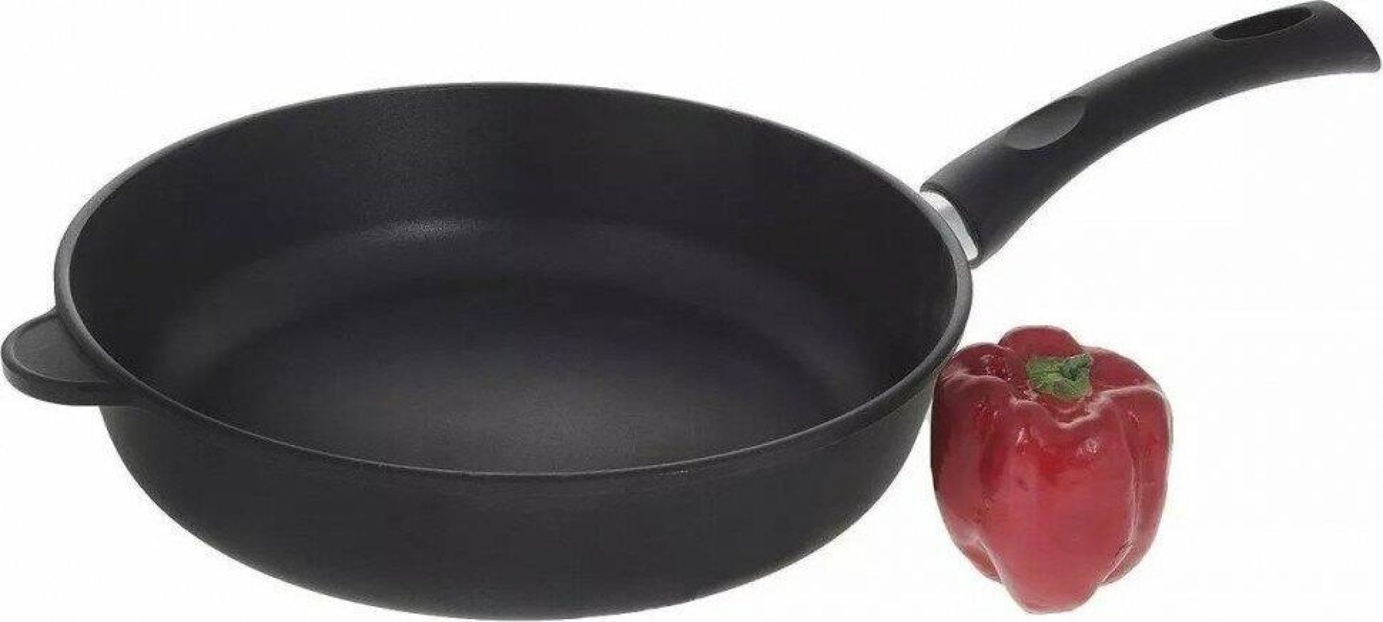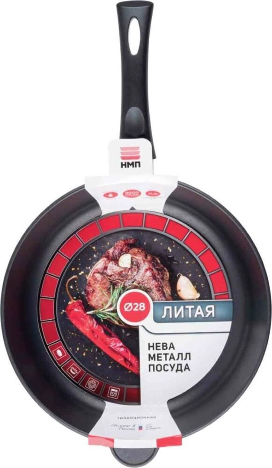 Общий диаметр 28 см Диаметр дна 22 см Толщина дна 6 мм Толщина стенок 4 мм Высота 7 см Тип универсальная сковорода Материал литой алюминий Форма круглая Наличие ручки 1 основная и дополнительная Материал ручки бакелит Покрытие и дно Антипригарное покрытие Особенности использования Возможность мыть в посудомоечной машине