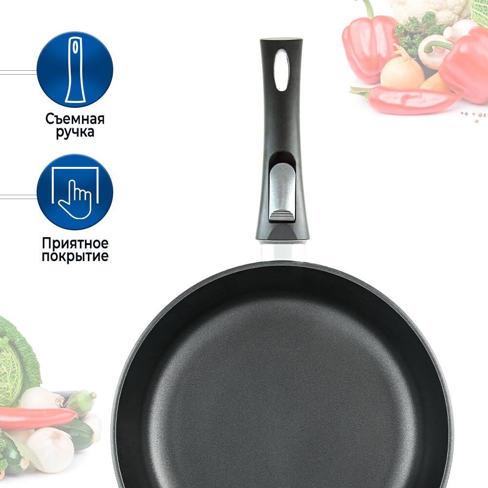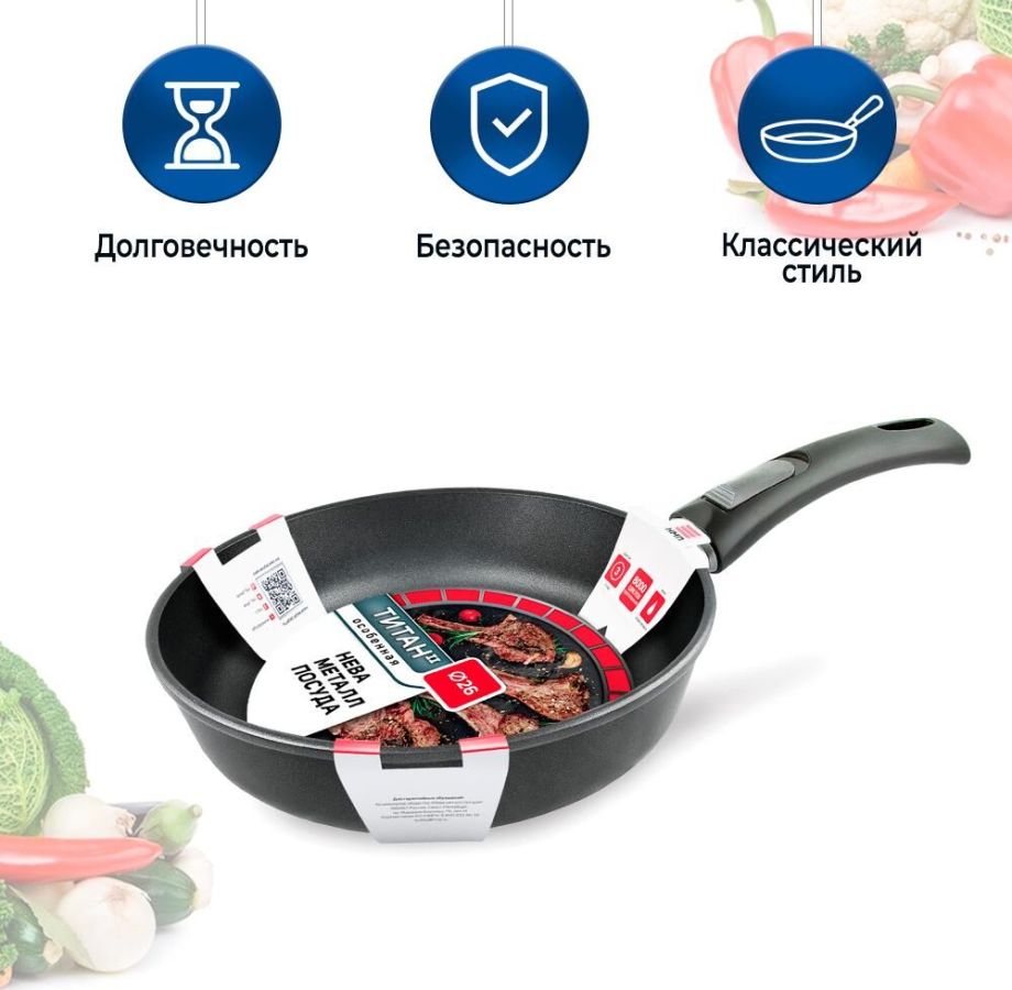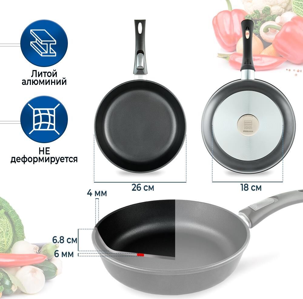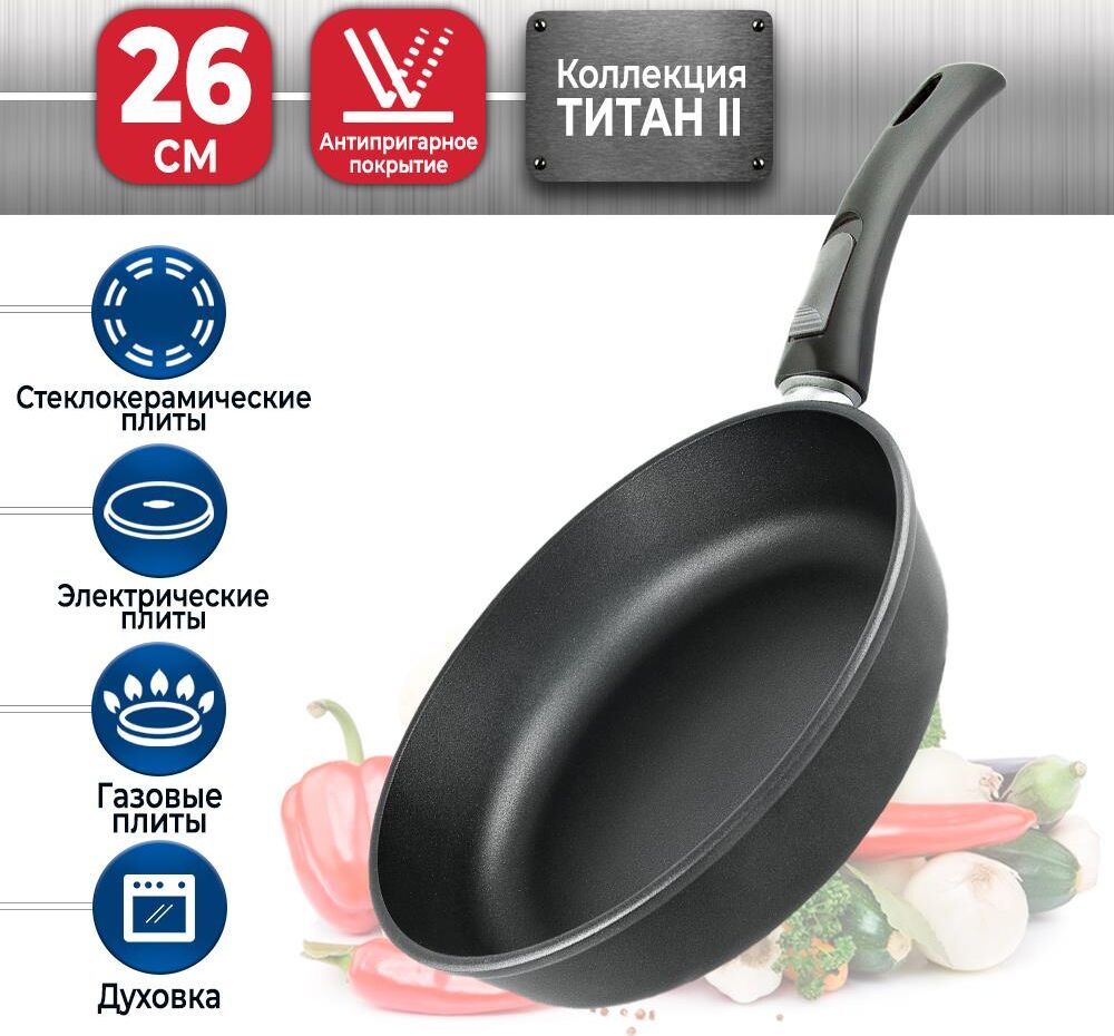 Тип покрытия Полимер-керамическое Диаметр изделия 26 см Диаметр дна 18 см Особенности Можно использовать в посудомоечной машине, Можно использовать в духовке, Съемная ручка Толщина дна 0.6 см Толщина бортов 0.4 см Форма Круглая Тип посуды Универсальная сковорода Плита Газовая, Электрическая, Стеклокерамическая Высота бортов 68 мм Серия Титан Вес 1.26 кг