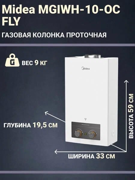 Информация о продукте: • Открытая камера сгорания • Мощность 19,5 кВт • Производительность 10 л/мин • Теплообменник из бескислородной меди • Розжиг от батарейки • Современный дизайн • ЖК дисплей отображающий температуру воды и заряд батареи • Автоматическое включение и отключение при протоке воды • Регулировка мощности горелки и протока воды • Надёжная латунная гидравлическая группа • Самодиагностика и многоступенчатая система безопасности • Защита от перегрева горячей воды • Защита от затруднённого дымоудаления • Защита от избыточного давления воды • 2 года гарантии Габариты: Вес нетто, кг: 9 Вес брутто, кг: 11.4 Габариты прибора (ВхШхГ), мм: 590х330х195