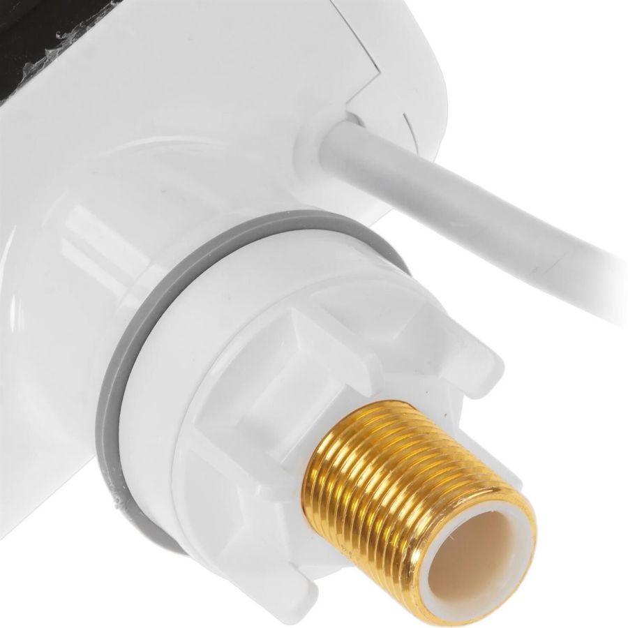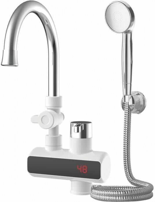 Номинальная мощность 3300 Вт Душевая лейка с креплением LED дисплей Мгновенный нагрев потока в диапазоне 30-60 °C Работает в водопроводных сетях с давлением от 0,05 до 0,5 МPa (0,5-5 бар) Производительность: 1-3 л/мин ( 60-180 л/ч) Эффективность преобразования энергии до 98,50% Автоматическое гидравлическое управление Соответствует стандарту влагозащиты IPX4 Защита от сухого включения ТЭНа Стандартная быстрая установка Кабель питания 123 см Защита от перегрева 230 B ~ 50 Гц
