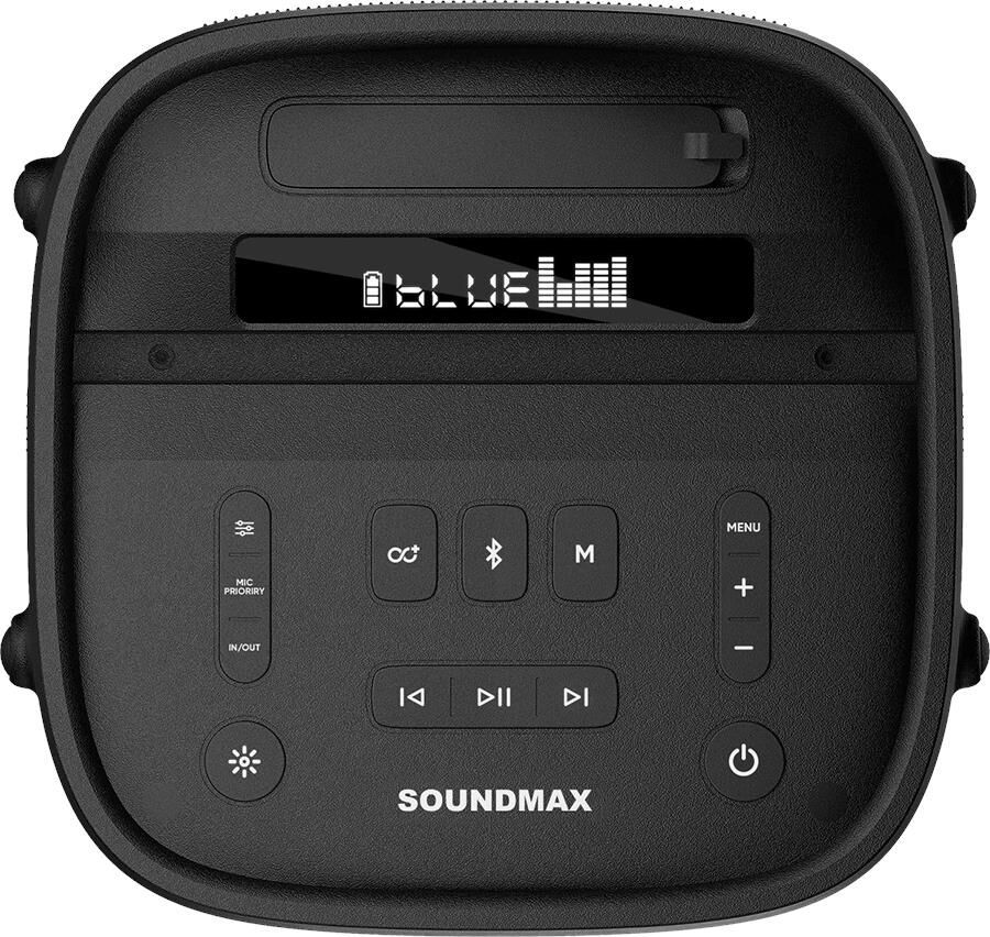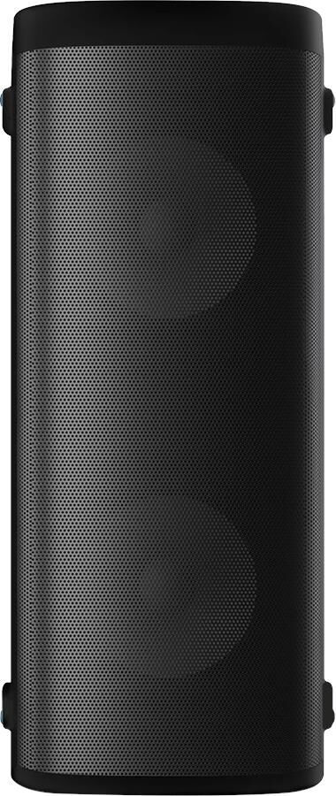 Номинальная выходная мощность (RMS): 150 Вт Пиковая выходная мощность: 1500 Вт Динамики: 2 x 8” + 2 x 2.5” Bluetooth 5.3 Поддерживаемые аудиоформаты: MP3, WAV, WMA, FLAC, APE Функция True Wireless Stereo (TWS) Цифровой FM-тюнер (87.5-108 МГц) Воспроизведение с USB 2.0 и microSD карты Поддержка зарядки внешних устройств USB 5 В, 1 А Аудиовход 3.5 мм jack Микрофонный и гитарный входы 6.35 мм jack Функция караоке Встроенная батарея: 7000 мАч Время работы от аккумулятора до 8 часов* LED дисплей Многоцветная LED подсветка динамиков Уровень влагозащиты: IPX4 Размеры устройства: 715 x 310 x 295 мм Цвет: черный