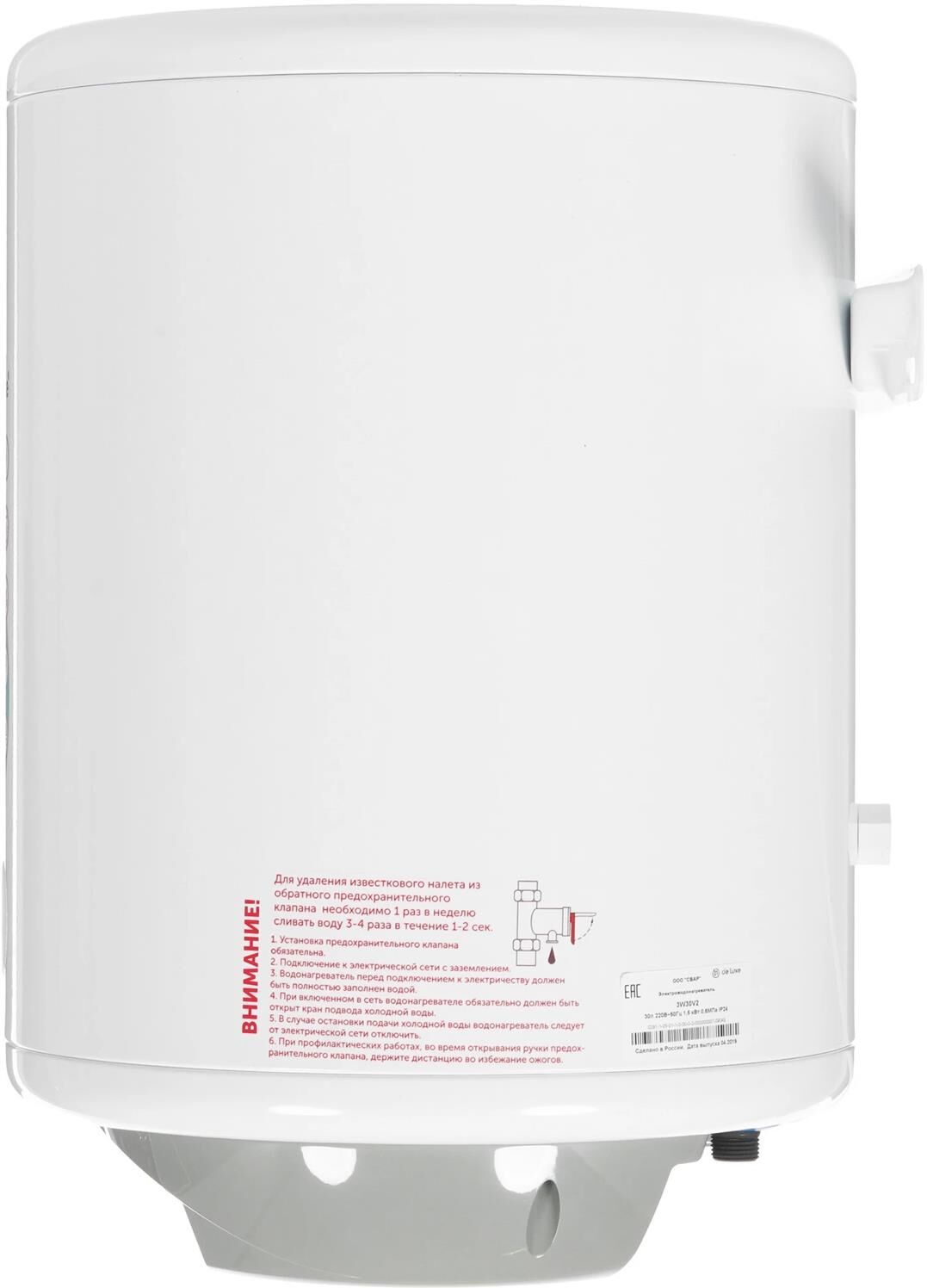 Система автоматического поддержания температуры. Световая индикация включения и нагрева. Система полной безопасности SPS security. Антикоррозийный магниевый анод. Предохранительный клапан. Слой теплоизоляции, существенно снижающий тепло- и энергопотери. Внутренний бак эмалирован бактерицидной стеклоэмалью. Антибактериальная самоочистка. Функция "антифриз" или защита от замерзания. Электронное управление. Комплектация: Электрический кабель с вилкой. Анкерные болты с гайкой. Предохранительный клапан. Техническое описание: Цвет - белый. Мощность - 1,5 кВт. Объём, л - 30. Размеры, мм - высота/диаметр – 517/360. Вес, кг - 14.