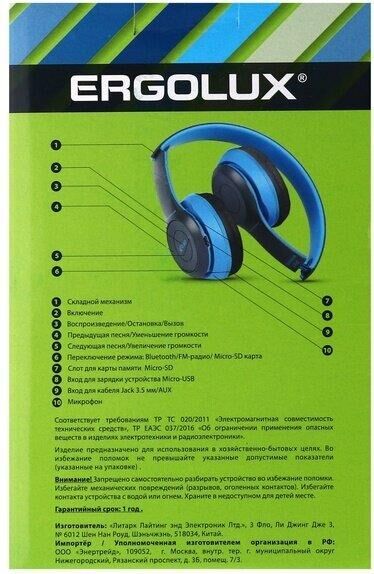 • Версия Bluetooth: 5.3 • Работа аккумулятора: до 8 часов • Аккумулятор: 5V/250 mAh • Вход питания: Micro-USB 5V • Время зарядки: 2 часа • Режим ожидания: 18 часов • Диапазон частот: 20 – 25 000 Гц • Чувствительность: 103 дБ • Сопротивление: 32 Ом • Микрофон: Да • Пульт управления: Да (многофункциональный) • Дополнительные разъёмы: AUX; Micro-SD слот • Дополнительные функции: FM радио; MP3 плеер