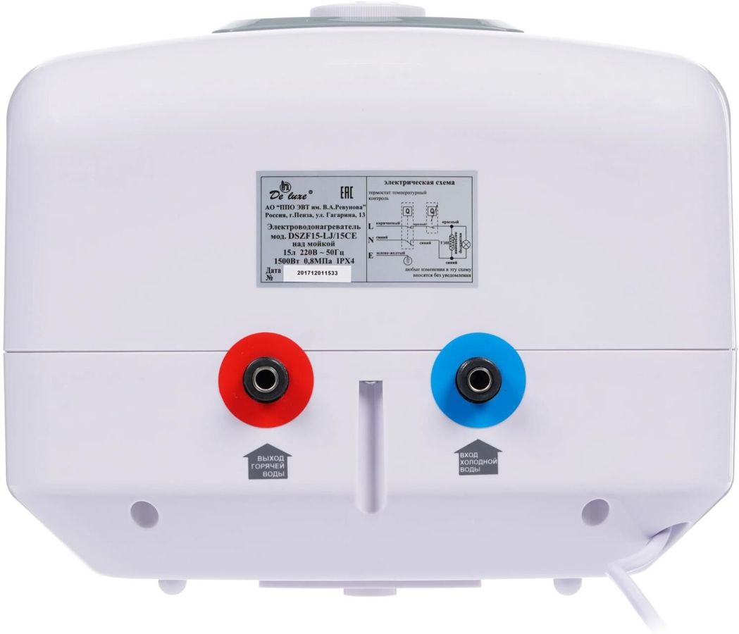 Система поддержания температуры. Световая индикация включения и подогрева. Максимально простая система управления терморегулятором. Система полной безопасности СПС безопасности. Антикоррозийный магниевый анод. Предохранительный клапан. Слой теплоизоляции, снижающий тепло- и энергопотери. Оптимальное рабочее давление. Комплектация: Электрический кабель с вилкой. Болт крепежный - 2 шт. Клапан обратный предохранительный. Техническое описание: Цвет - белый. Мощность - 1,5 кВт. Объём, л - 15. Размеры, мм - высота/диаметр – 440/365/450. Вес, кг - 7.