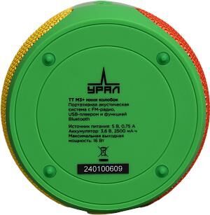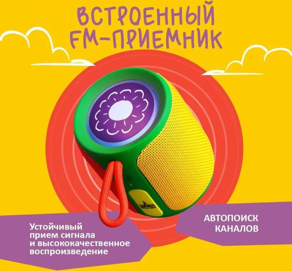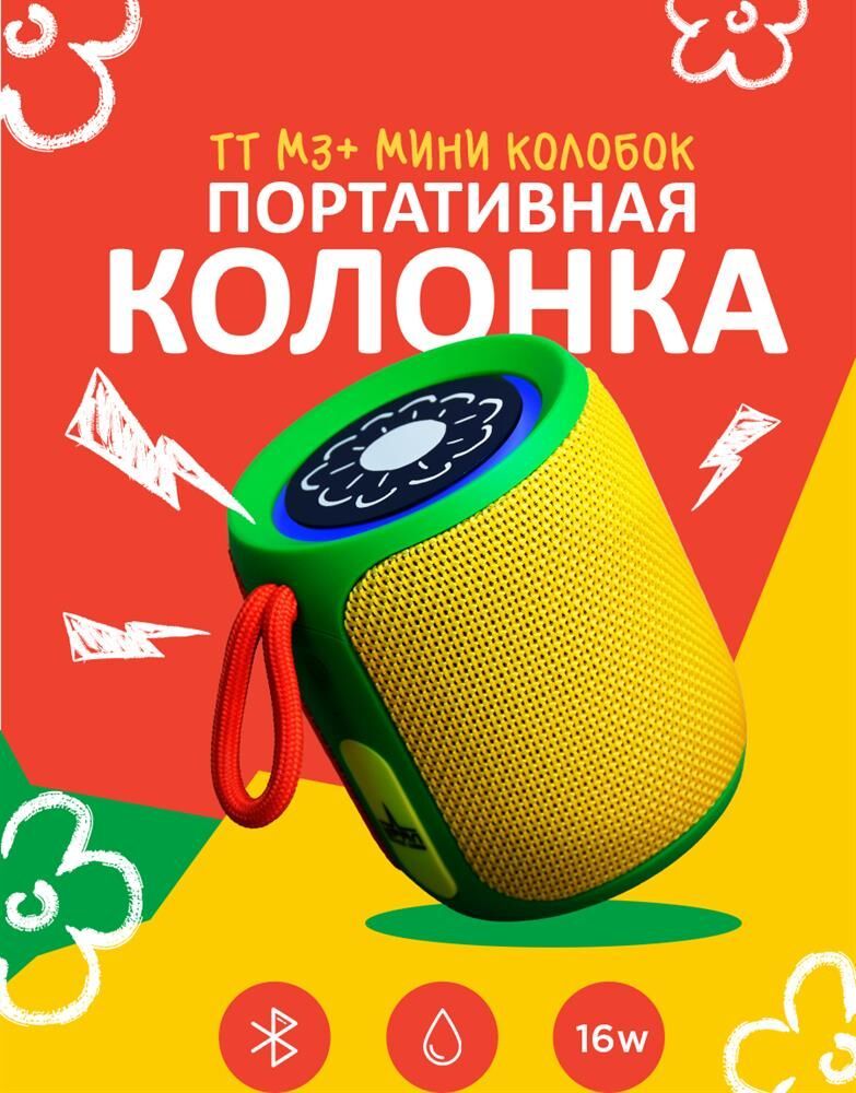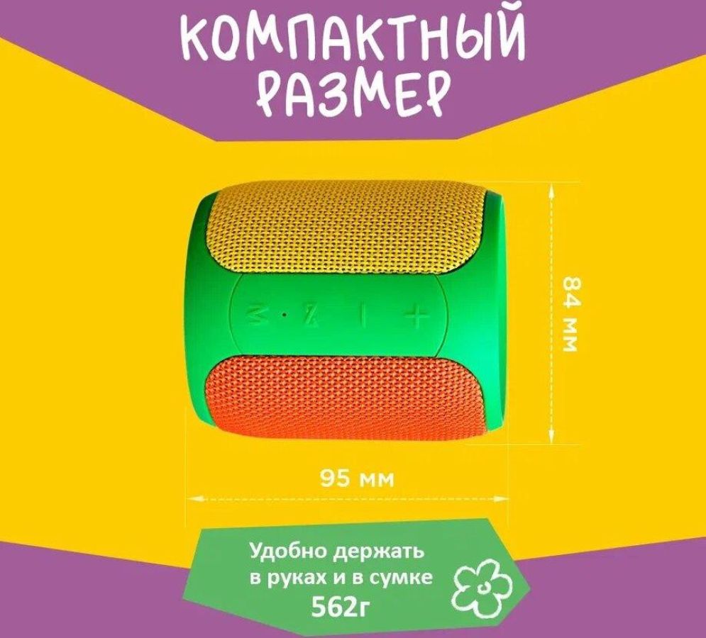 Максимальная выходная мощность, Вт 2 x 8 Диапазон частот, Гц, не уже 75 – 20000 Отношение сигнал/шум, дБ, не менее 80 dB Коэффициент гармоник, %, не более 0,1% Степень защиты корпуса от пыли и влаги: IP67 Габаритные размеры (ДxШxВ), мм 95x84x84 Вес, г 320. Портативная колонка ТТ М3+ мини "колобок" предназначена для воспроизведения детских сказок и аудиозаписей. Возможность воспроизведения контента с USB: в отличие от обычных детских колонок с предустановленными сказками, в эту модель можно вставить любую флешку с аудиозаписями или аудиокнигами для детей. Цветовая гамма колонки специально подобрана для восприятия детьми как игрушки, делая её не только полезным, но и привлекательным устройством. Колонка оснащена встроенным радиоприемником, позволяя наслаждаться разнообразием радиостанций. Влагозащита IP67 делает колонку безопасной для использования детьми и устойчивой к возможному контакту с водой.
