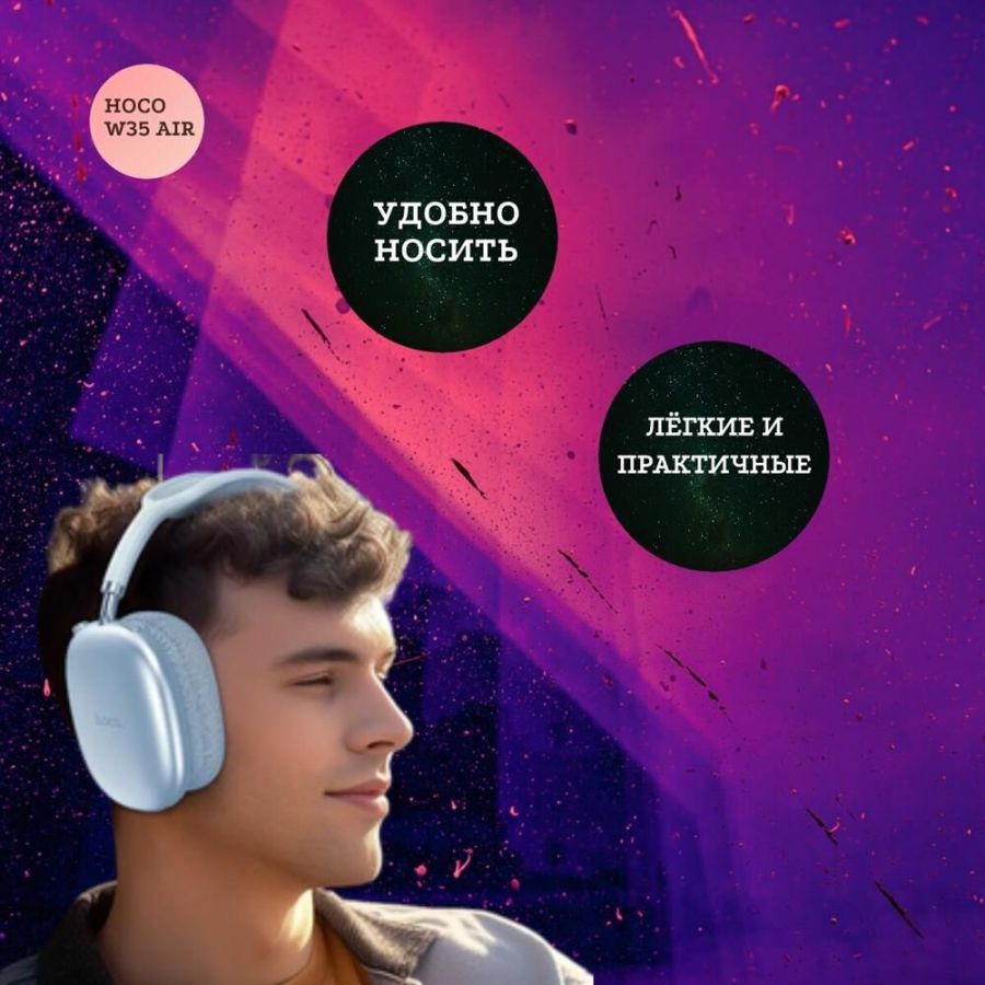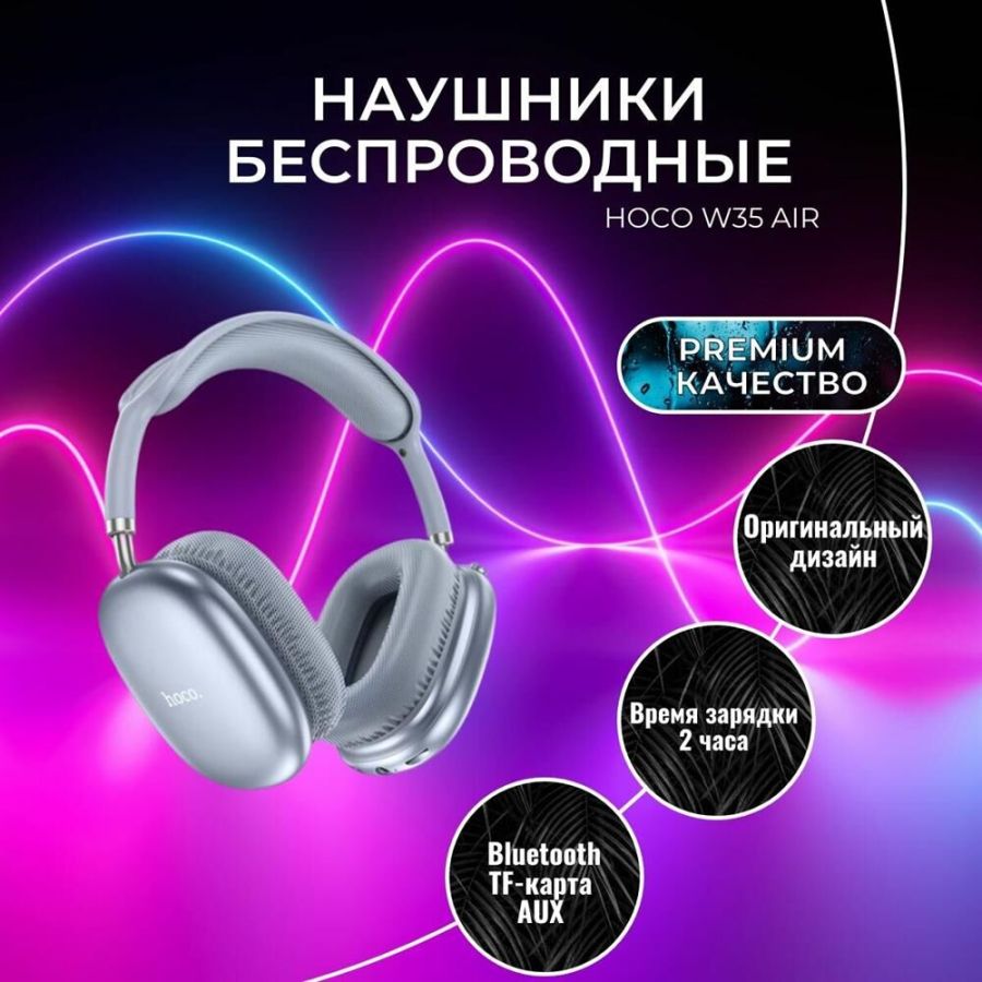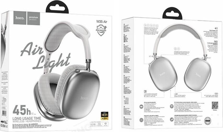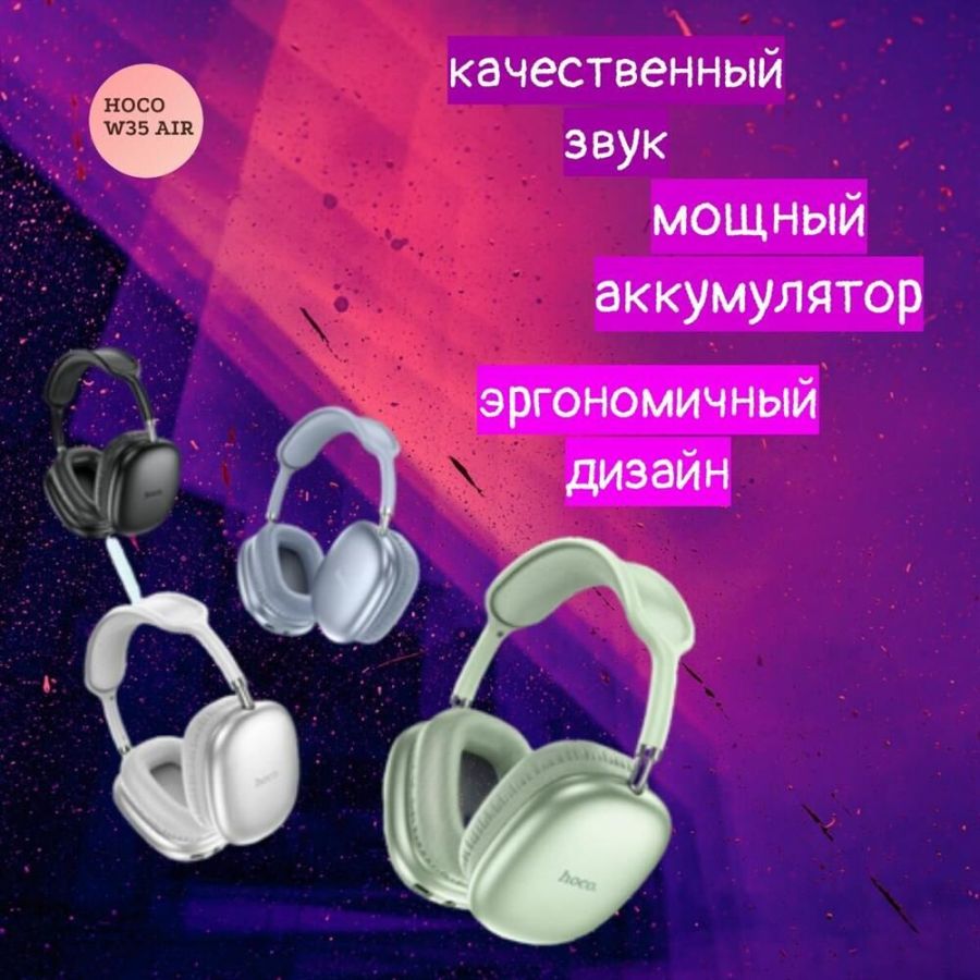 Комплектация: Кабель проводного подключения - 1 шт., Зарядное устройство USB Type-C - 1 шт., Наушники беспроводные Hoco W35 Air - 1 шт.