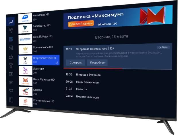 Диагональ 55". Встроенный Bluetooth. SmartTV Да. Формат экрана 16:9. Интерфейсы USB, HDMI, AV. Количество тюнеров 3. Контрастность 5000:1. VESA 200х200. Операционная система Android 11. Потребляемая мощность 160 Вт. Разрешение 3840x2160. Технология HDR Да. Напряжение питания 220-240 В / 50-60 Гц. Максимальная скорость передачи данных 867,7 мб/с. Версия Bluetooth 4.2. Диапазон Wi-Fi 2.4 ГГц, 5 ГГц. Угол обзора 178 ⁰. Время отклика матрицы, мс 8. Частота обновления, Гц 60. Яркость, кд/м² 250. Кол-во отображаемых цветов 1.07 млрд. Dolby/Dolby+ Да. Типы принимаемых ТВ сигналов DVB-T/T2/C/S/S2. CI (Common Interface) PCMCIA CI+ 1.3. HDMI, кол-во входов 3 . USB, кол-во входов 2. Потребление электроэнергии в режиме ожидания 0.5. Голосовой помощник Маруся.