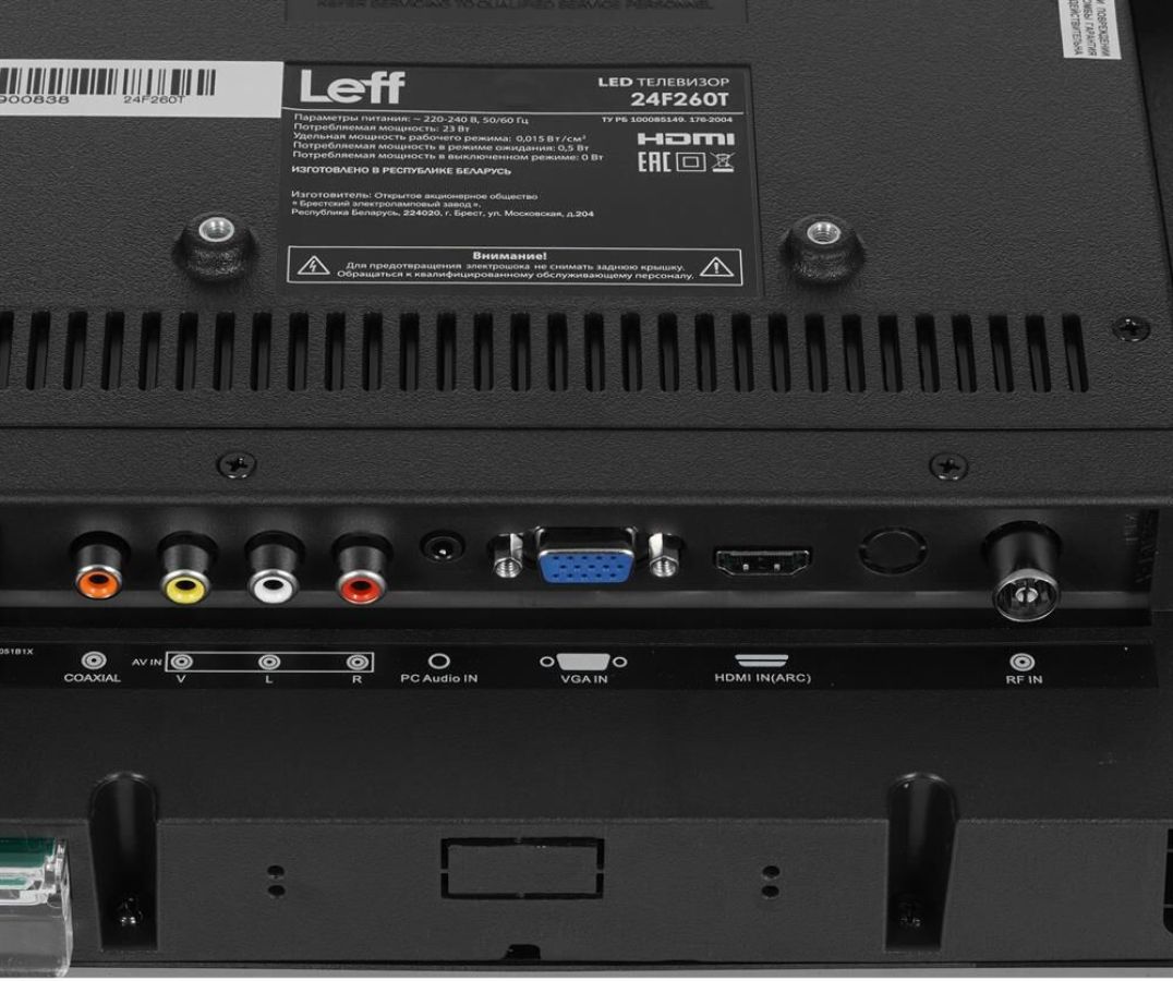 24" (60см), DLED, FHD (1920*1080), DVB-T2/C, Dolby AC-3, CI+ slot. Цвет: черный. 16:9, яркость 200кд/м2, контрасность 4000:1; 16.7 млн цветов, аудио 2х3Вт, 1хUSB, 1xHDMI, VGA, AV IN, MINI Y/Pb/Pr, COAXIAL, выход под наушники, USB-медиаплеер (PVR), телетекст, родительский контроль, Timeshift. VESA 100х100