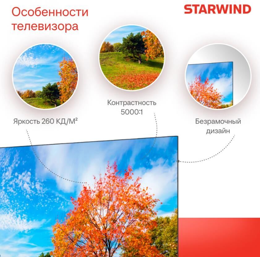 Диагональ экрана (дюймы) 50". Разрешение 3840x2160. Покрытие экрана глянцевое. Соотношение сторон 16:9. Яркость экрана 250кд/м2. Контрастность 5.000:1. Время отклика пикселя 6.5мс. Углы обзора (гориз/верт) 178x178. Частота обновления 60Гц. Тип звукового декодера Dolby Digital Plus, NICAM. Акустическая схема 2.0. Объем оперативной памяти 1.5ГБ. Объем встроенной памяти 8ГБ. Функции и режимы гид по программам (EPG). Стандарт разрешения экрана 4K Ultra HD. Поддержка SMART TV ДА. Встроенный Wi-Fi да. Встроенный Bluetooth да. Процессор изображения G52(2EE)MC1. Размер VESA 200x200. Класс энергоэффективности B. Тип блока питания встроенный. Энергопотребление в рабочем режиме 100Вт. Энергопотребление в режиме ожидания 0.5Вт. Часть умного дома ДА. Экосистема Яндекс. Совместимость с голосовыми помощниками Алиса.