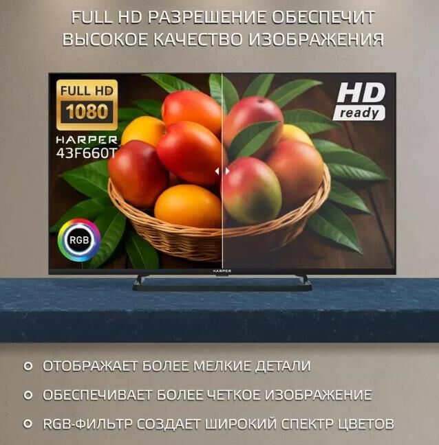 43" (109см),Metal Y Stand,FULL HD 1920x1080,Frameless, цифровой тюнер DVB-T2/DVB-C/S2,(.H.264/MPEG4/2/1/VC1/DivX) ,Запись ТВ программ , Электронный Телегид, Отложенный просмотр; слот CI+ для модуля условного доступа, формат экрана: 16: 9, Авто динамическая контрастность: 90000: 1 , яркость: 250 кд/м2, угол обзора (Г/В): 178°/178°, время отклика: 8 мс, Частота обновления экрана - 50Гц, 3D цифровой фильтр, русское, английское меню, телетекст, аудио: 2х10 Вт, входы: антенный ,разъемы для подключения: 2 USB, 3 HDMI, копмозитный AV, компонентный YPbPr, VGA, HDMI,ПК аудио,SCART вход,SPDIF, вход для наушников, вход CI+ (common interface), вход для антенны