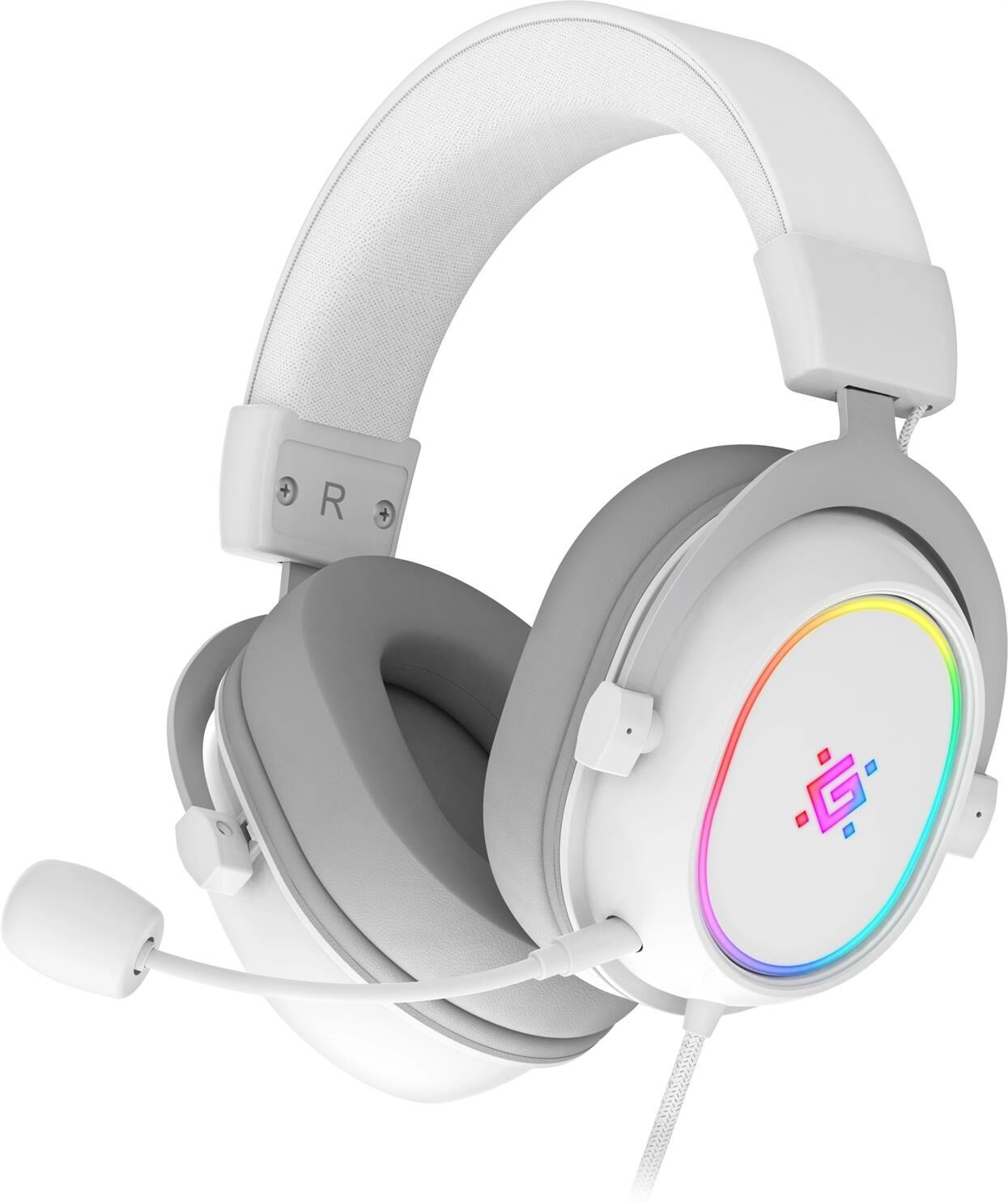Комфортная игровая гарнитура с отличным качеством звука, массивными охватывающими амбушюрами, функцией mute и яркой RGB подсветкой.