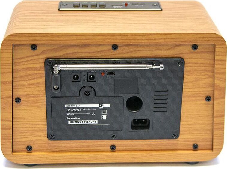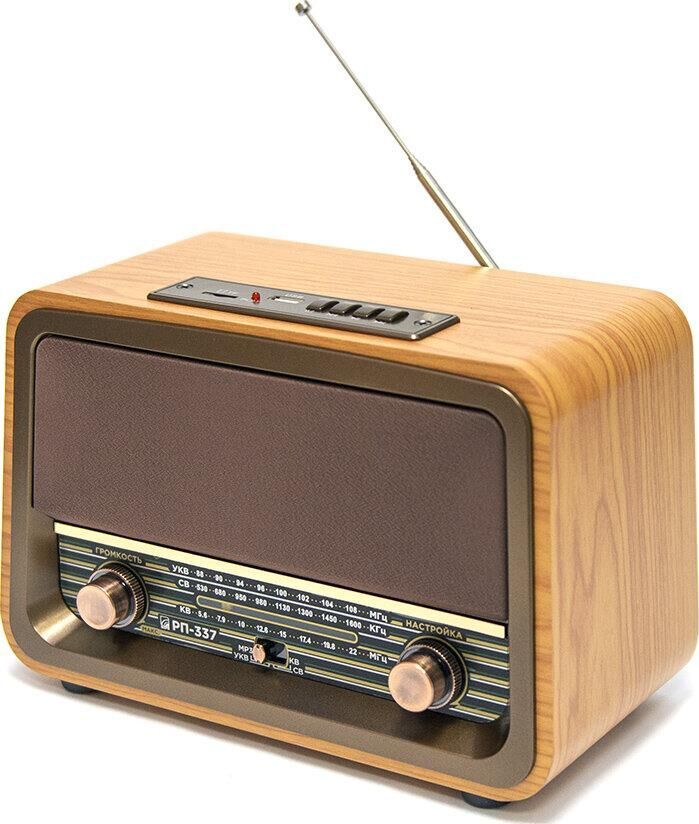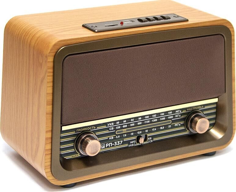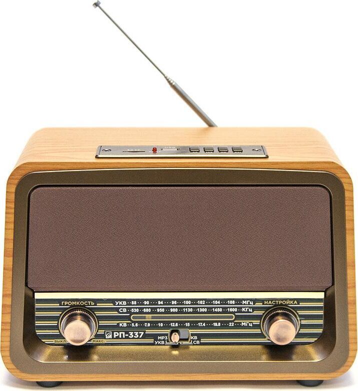 Представляем Вам радиоприемник в стиле ретро – «БЗРП РП - 337». Эта модель привлекает внимание своим внешним видом: сдержанный дизайн, монохромные оттенки и удобные детали. Благодаря этому радиоприемник станет оригинальным предметом интерьера и задаст атмосферу пространству. «БЗРП РП - 337» имеет аналоговый тюнер. Это позволяет максимально точно настроить радиостанции. Корпус радиоприемника выполнен из МДФ, что обеспечивает чистый и качественный звук. На верхней панели расположены разъемы и кнопки управления, это очень удобно для использования приемника. «БЗРП РП - 337» оснащен современными технологиями: Bluetooth и возможность воспроизведения с внешних носителей. А значит, Вы можете наслаждаться не только прослушиванием радиостанций, но и любимой музыкой в любое время. Особенностями данного радиоприёмника являются: Bluetooth версии 5.3; Уверенный прием сигнала в 3 диапазонах: УКВ/СВ/КВ; Возможность воспроизведения музыки с USB и microSD (TF)