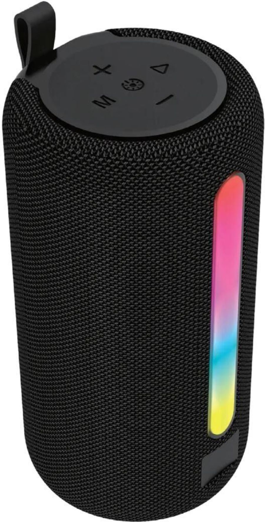 Беспроводная колонка Размер и мощность динамика: 52 мм, 10 Вт Емкость аккумулятора: 3,7 В, 1200 мАч Версия Bluetooth: V5.4 Степень защиты от влаги: IPX4 Беспроводные интерфейсы: FM, Bluetooth Поддерживаемые разъемы: USB, TF (Micro USB SD) Время прослушивания музыки: 3-4 часа Время зарядки: ≈ 2,5 часа Расстояние подключения: ≤10 метров Размер: Ø 86 x 165 мм Вес изделия: 536 г Подсветка: цветная светодиодная Цвет: черный