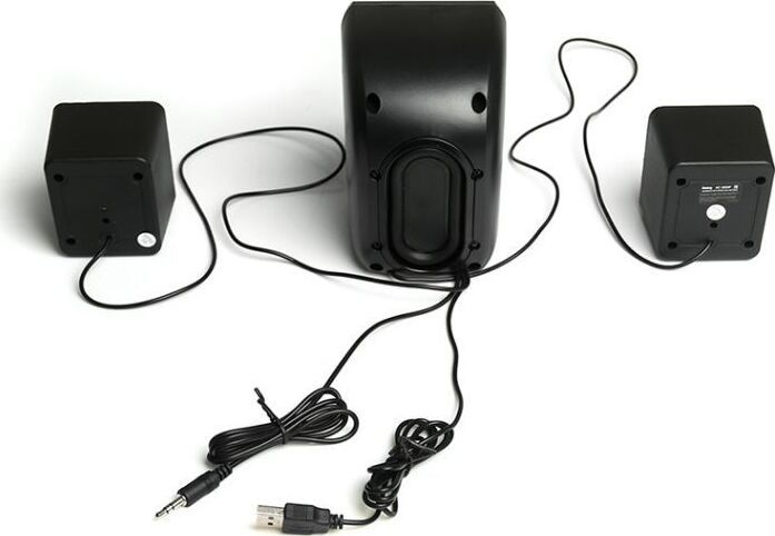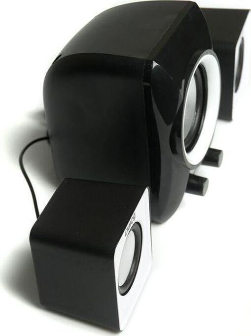 Компактная акустическая стереосистема с питанием от USB. Мощность RMS 11(Вт), встроенный усилитель, стереовход (джек 3.5 мм), сабвуфер 2,4", мощность 5Вт, сателиты 1,8", мощность 3Вт, габаритные размеры (В*Ш*Г) мм: 55*70*62, цвет: белый/черный.