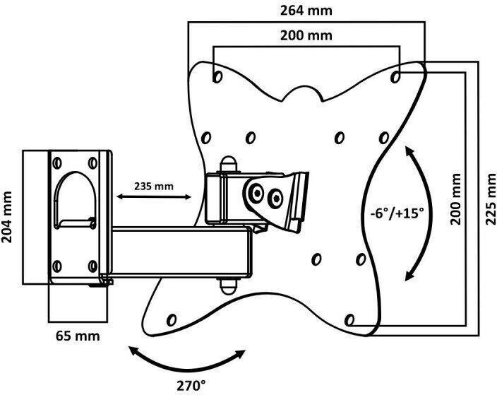 Наклонный-поворотный (Функц) Диагональ: 10"-50" (25-127см) Расстояние от стены: 50-204 мм Угол наклона: -6°/+15° Угол поворота: 270° Нагрузка: 25 кг Толщина металла адаптера 1,5 мм, основания 3 мм. Механизм "Шип-паз" Удобная фиксация "Гайка-барашек" Регулировка угла наклона и поворота без использования инструмента. VESA 75*75, 100*100, 200*100.