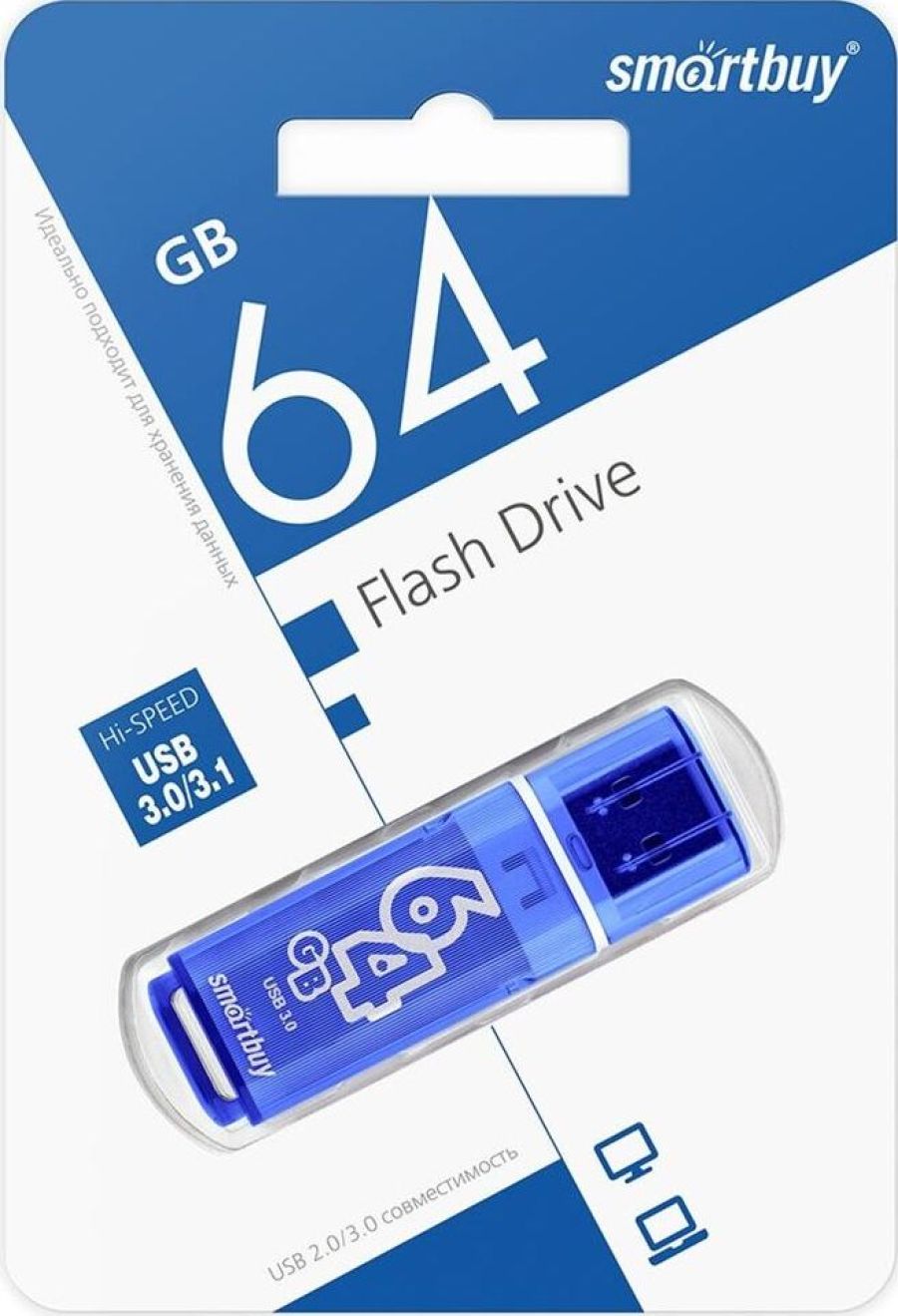 Флеш-накопитель, объем - 64 ГБ, интерфейс - USB 3.0, макс. скорость чтения, Мб/с 45, макс. скорость записи, Мб/с -12, отверстие для крепления, колпачок, материал корпуса - пластик.