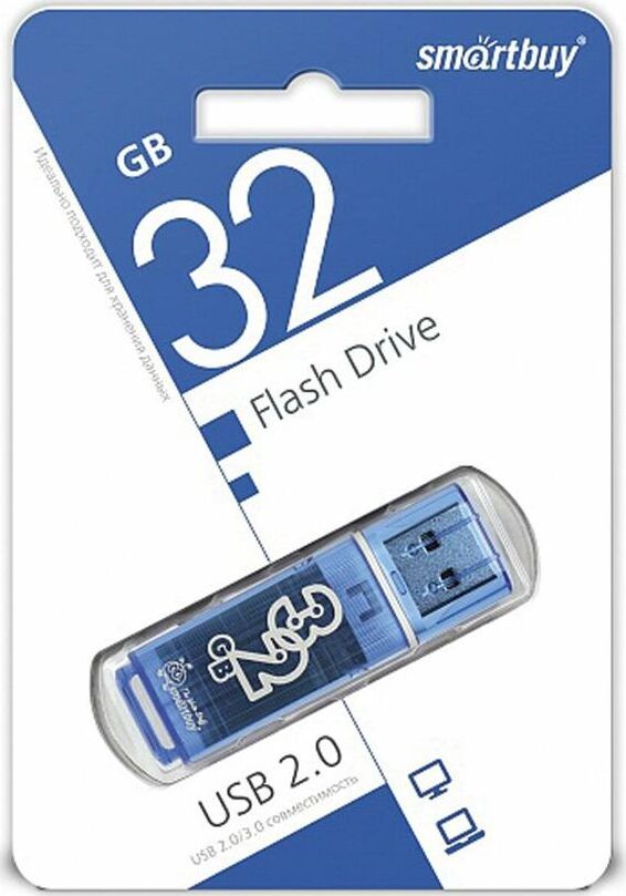 USB-накопитель Glossy, емкость - 32GB, интерфейс - USB 2.0 , оборудован специальной системой для крепления колпачка — с помощью скобки он фиксируется между двумя выступающими пластинками на устройстве, это очень удобно и минимизирует вероятность потери защитного колпачка, за эту же скобку устройство можно прикрепить к шнурку, чтобы накопитель всегда был под рукой.