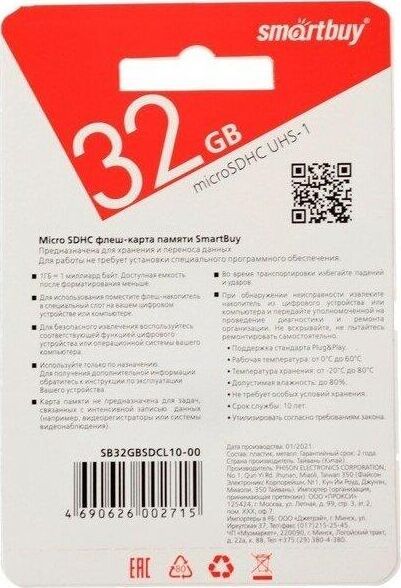 Карта памяти, объем - 32GB, скорость передачи данных: не менее 10 МБ/с, универсальный носитель информации на основе технологии флэш-памяти для самых различных целей.