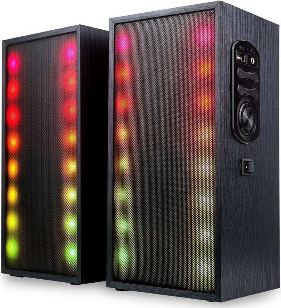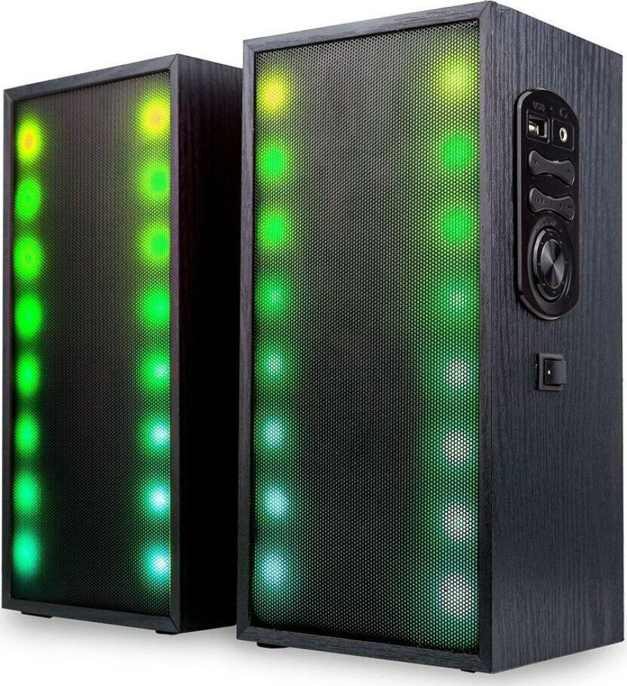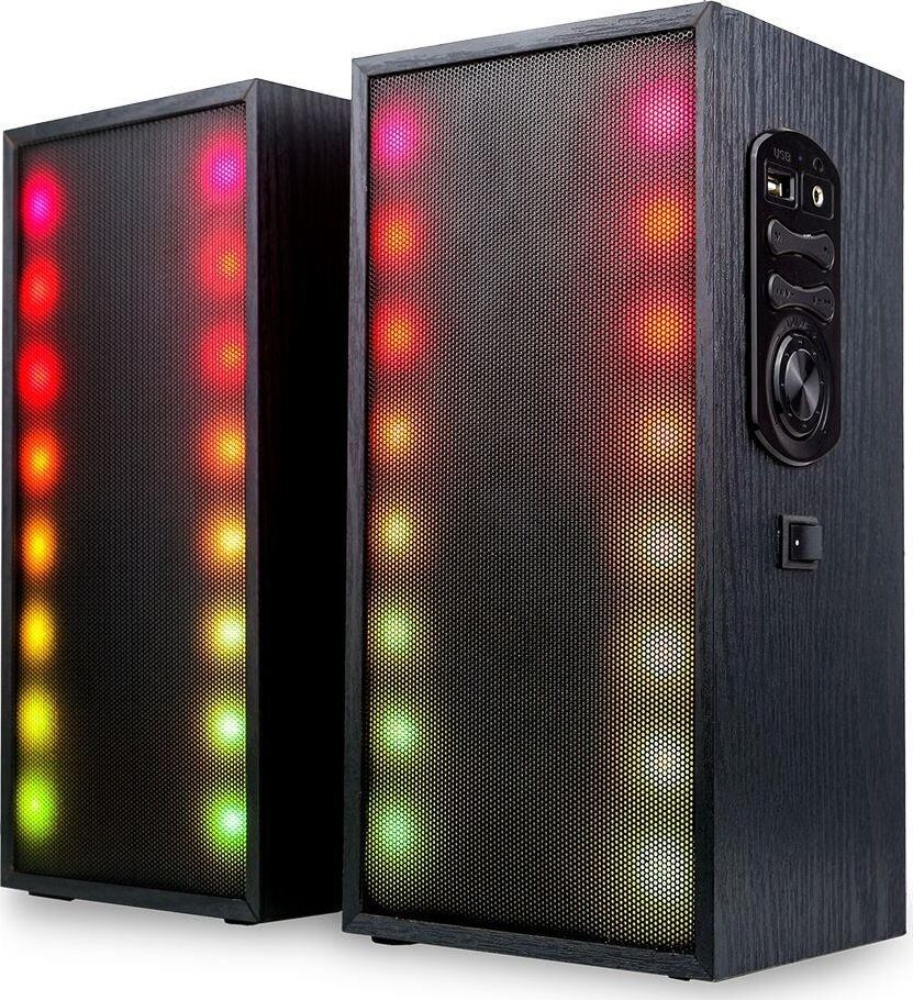 Максимальная выходная мощность 20 Вт Материал корпуса: дерево Динамики 2* 76 мм Питание: 220В Дополнительные функции: Bluetooth, Mp3-плеер (USB), Радио. Подсветку можно отключить