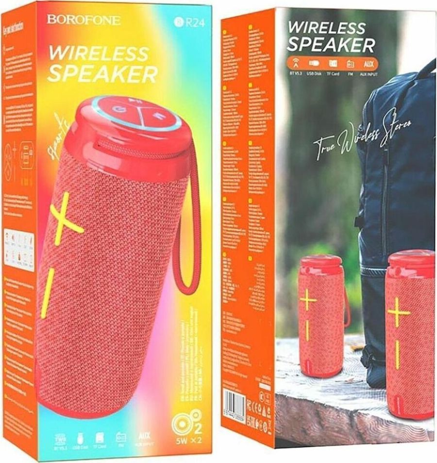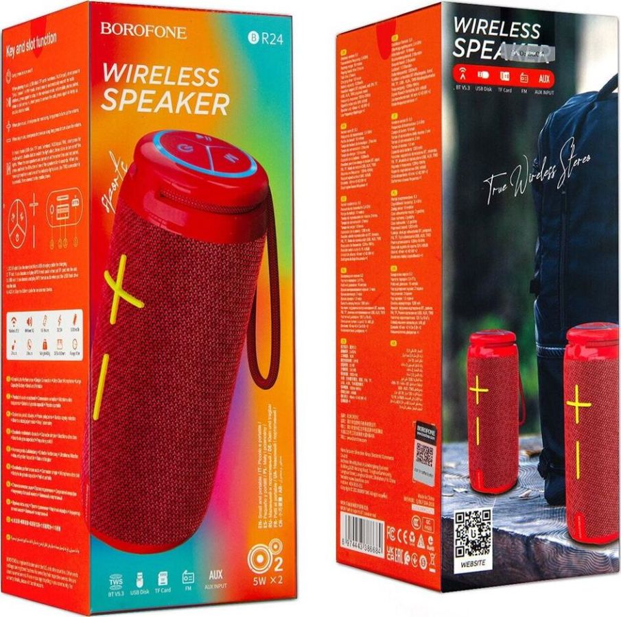 Портативная колонка, BT v5.3, батарея 1200mAh для 2 часов использования, поддержка BT, FM, TF, USB, AUX, TWS режимов воспроизведения.