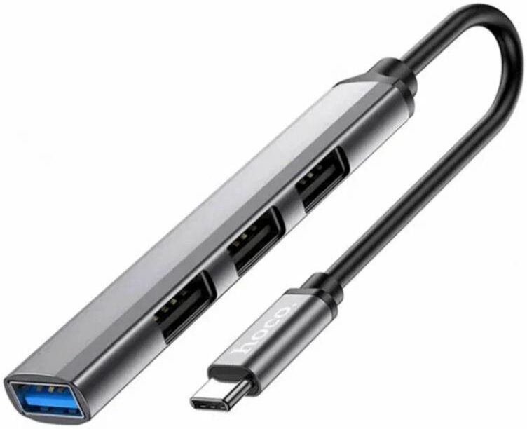USB-хаб HOCO (6931474765468) HB26 Metal Grey в интернет магазине КорБТ