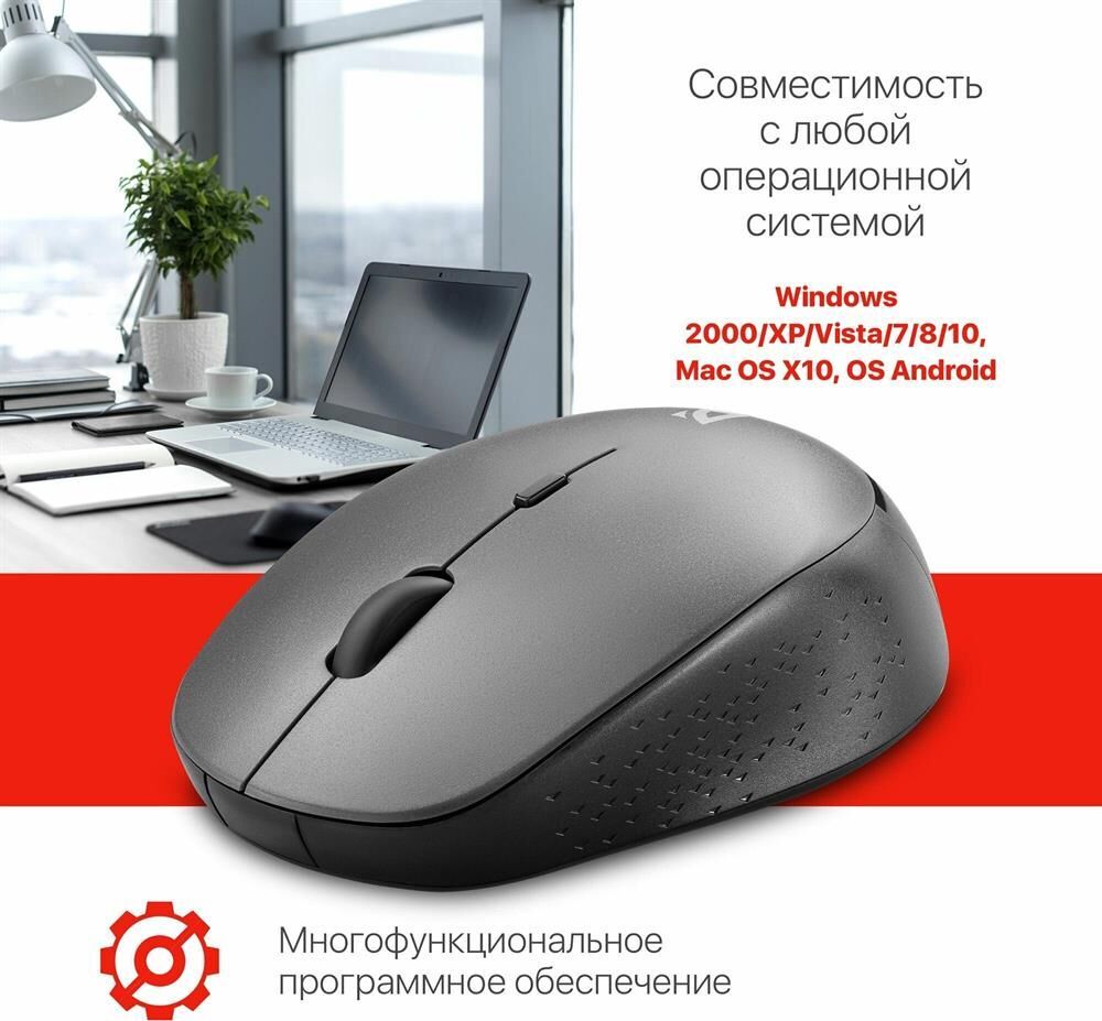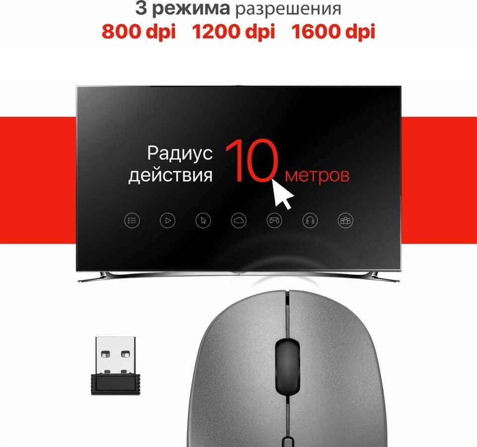 Тип подключения: беспроводной Интерфейс подключения: USB Количество кнопок: 3 + колесо-кнопка Тип сенсора: оптический Разрешение сенсора мыши, DPI: 800 / 1200 / 1600 Разрешение: 800/1200/1600 dpi Минимальное значение DPI: 800 dpi Максимальное значение DPI: 1600 dpi Количество нажатий: 5 миллионов Бесшумные кнопки: есть Тефлоновые ножки: есть Питание: 1 × AA Цвет: серый ROHS / CE: Да Радиус действия: 0–10 м Масса индивидуальной упаковки: 0.08 кг Масса без упаковки: 0.06 кг Размеры без упаковки: 6.3 x 3.7 x 10.5 см Системные требования для ПК: Windows 2000/XP/Vista/7/8/10/11 Mac OS X10 Гарантийный срок: 6 месяцев