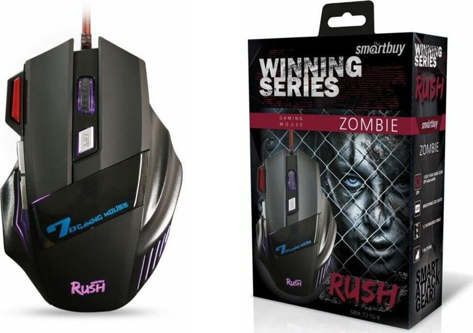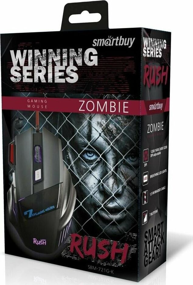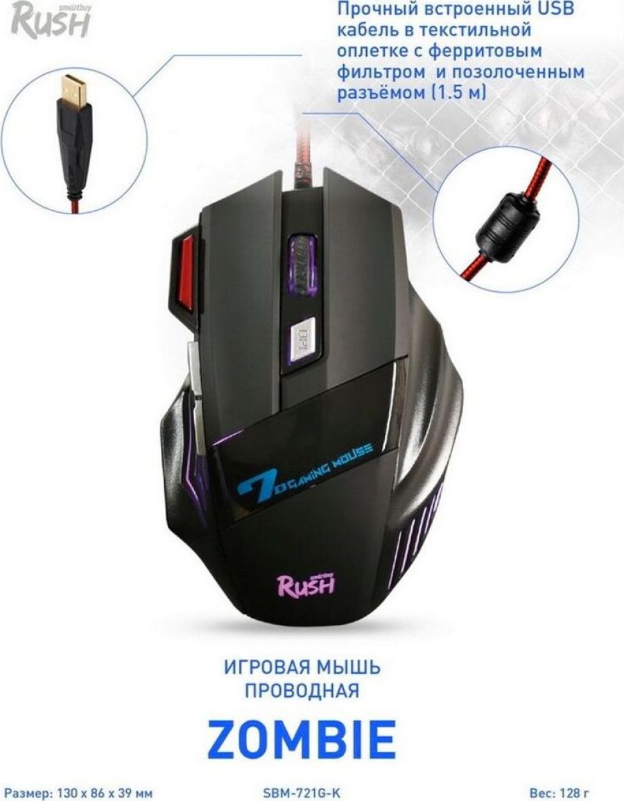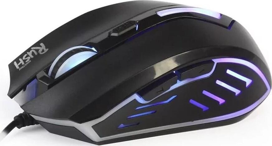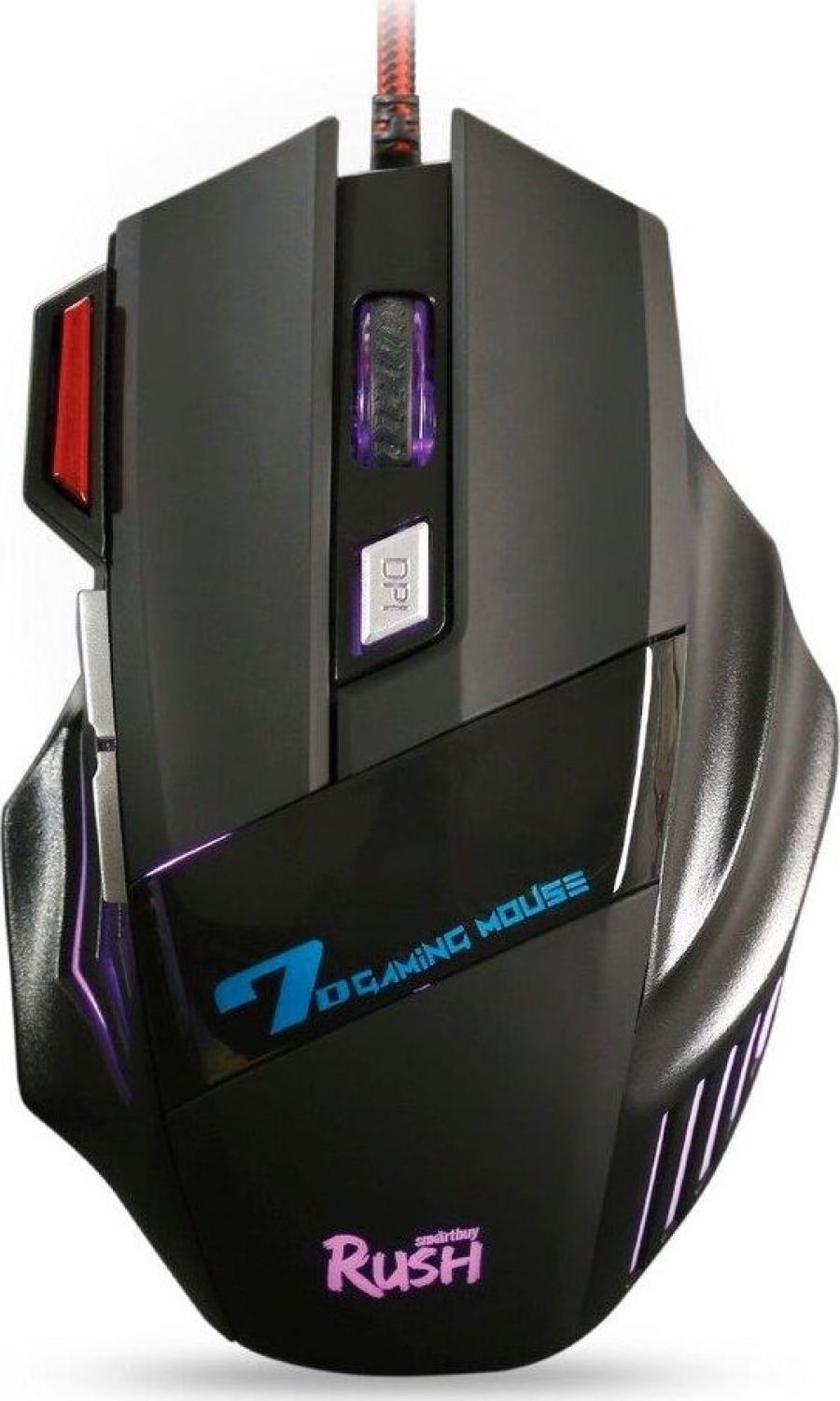 Мышь игровая, проводная, интерфейс USB, количество кнопок - 7 , изменяеоме разрешение 1200/1600/2400/3200 dpi, 4-х цветная LED-подсветка, металлическая пластина внутри корпуса мыши, кабель в текстильной оплетке с ферритовым фильтром, высококачественное покрытие софт-тач, длина кабеля - 1,5 м.