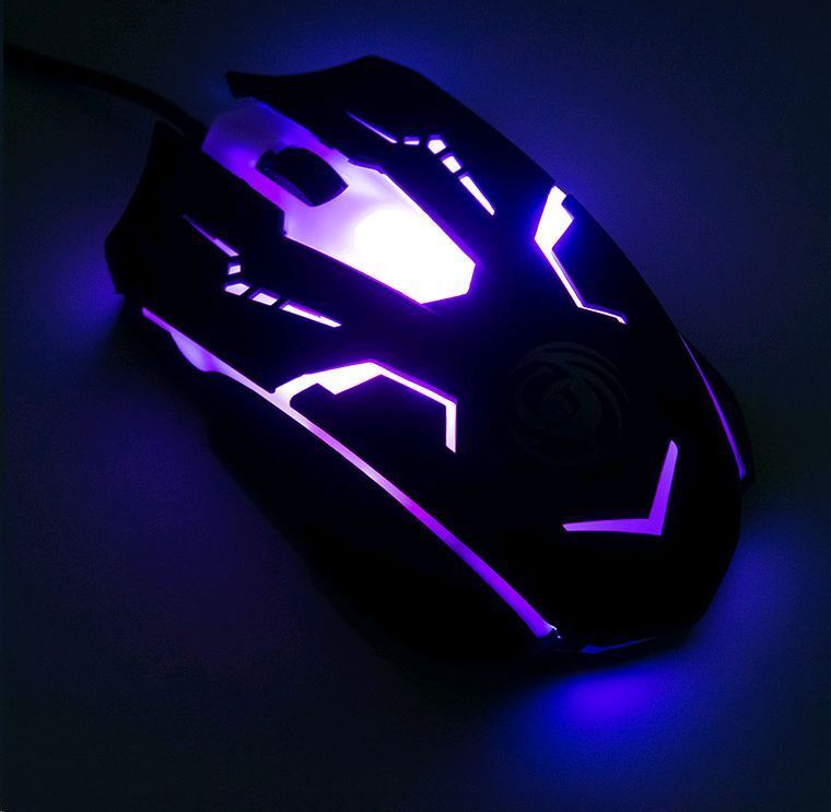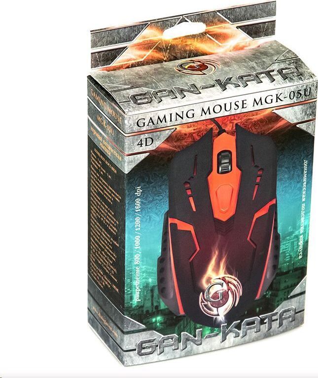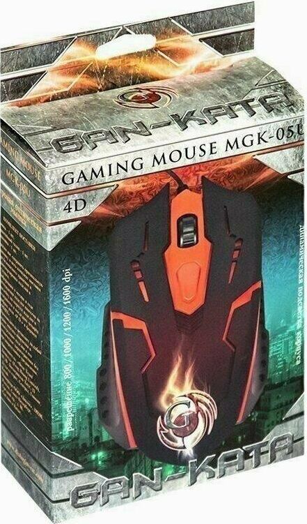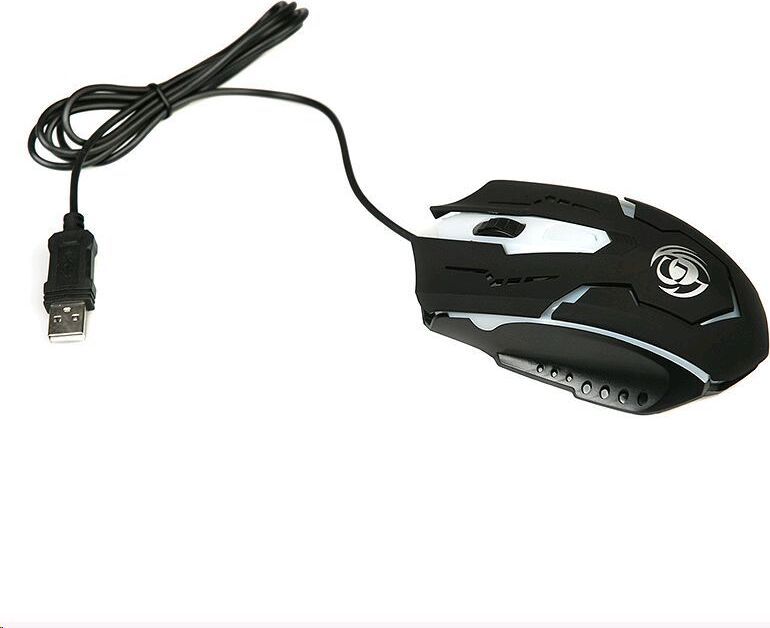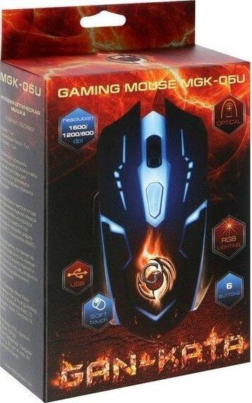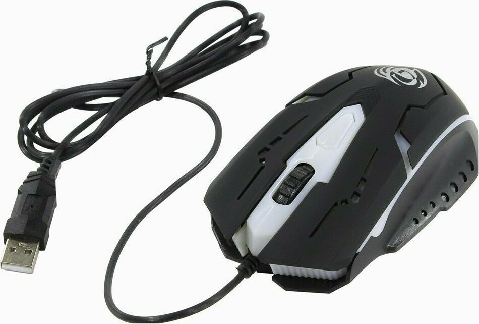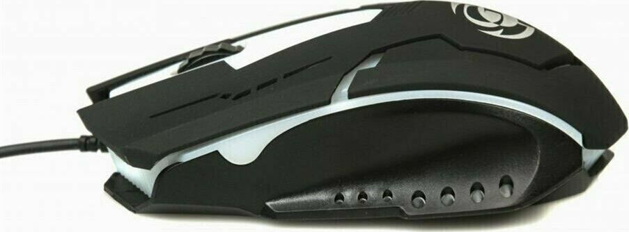 Игровая оптическая проводная мышь с подсветкой. Крупная симметричная мышь - подходит одинаково и для правшей, и для левшей. Подсветка изменяется циклически, цвета: белый, голубой, синий, фиолетовый, оранжевый, красный. Матовый черный пластик, верхняя панель с кнопками - пластик софт-тач. Динамически изменяемое разрешение циклически центральной кнопкой (800/1000/1200/1600 dpi). Количество кнопок - 4. Длина шнура - 1,5 м. Размер - 120*73*38 мм. Вес - 82 г.