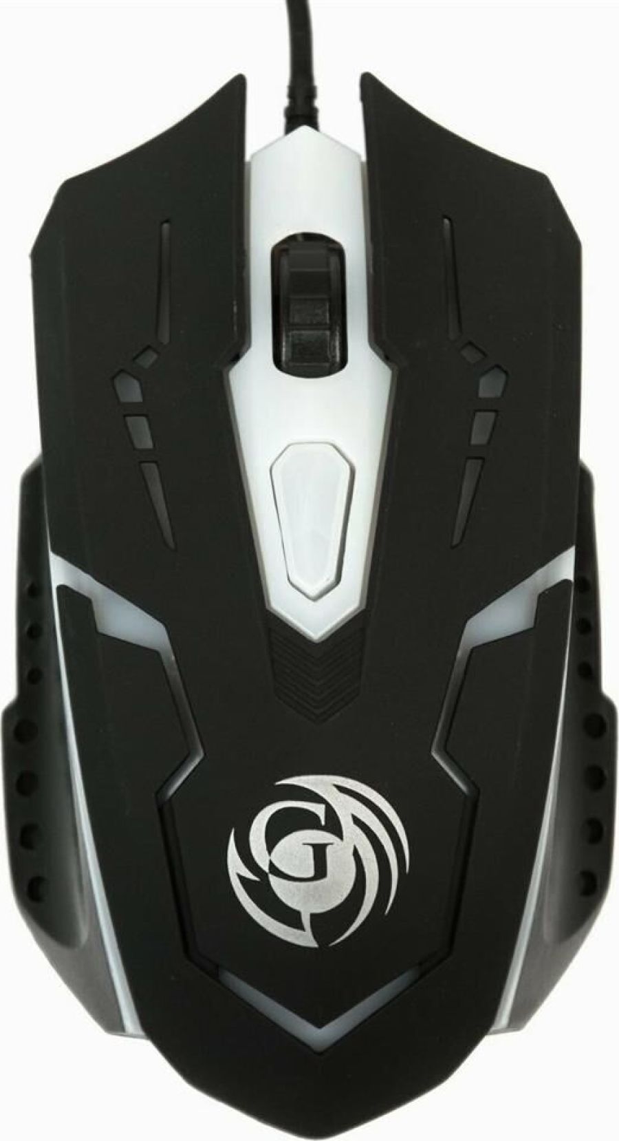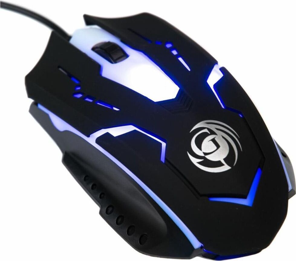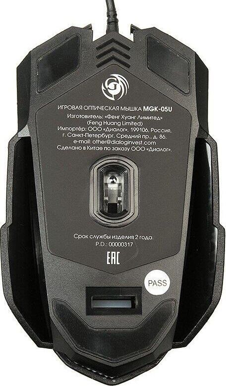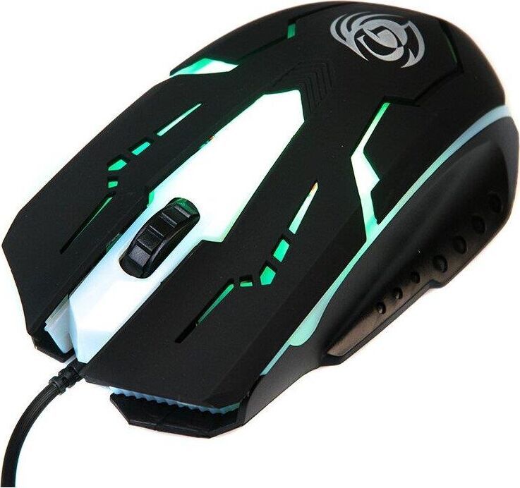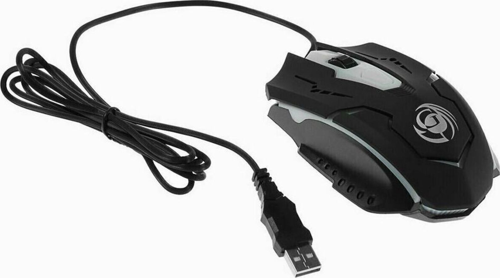 Игровая оптическая проводная мышь с подсветкой. Крупная симметричная мышь - подходит одинаково и для правшей, и для левшей. Подсветка изменяется циклически, цвета: белый, голубой, синий, фиолетовый, оранжевый, красный. Матовый черный пластик, верхняя панель с кнопками - пластик софт-тач. Динамически изменяемое разрешение циклически центральной кнопкой (800/1000/1200/1600 dpi). Количество кнопок - 4. Длина шнура - 1,5 м. Размер - 120*73*38 мм. Вес - 82 г.