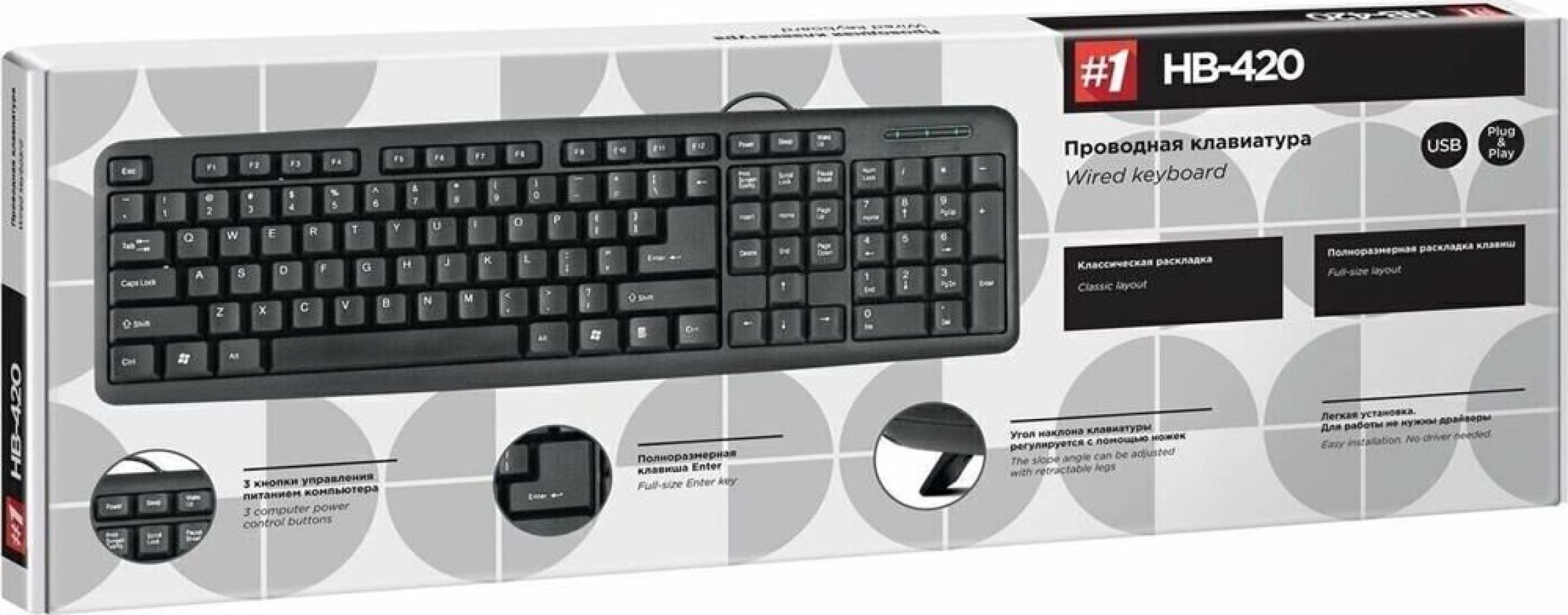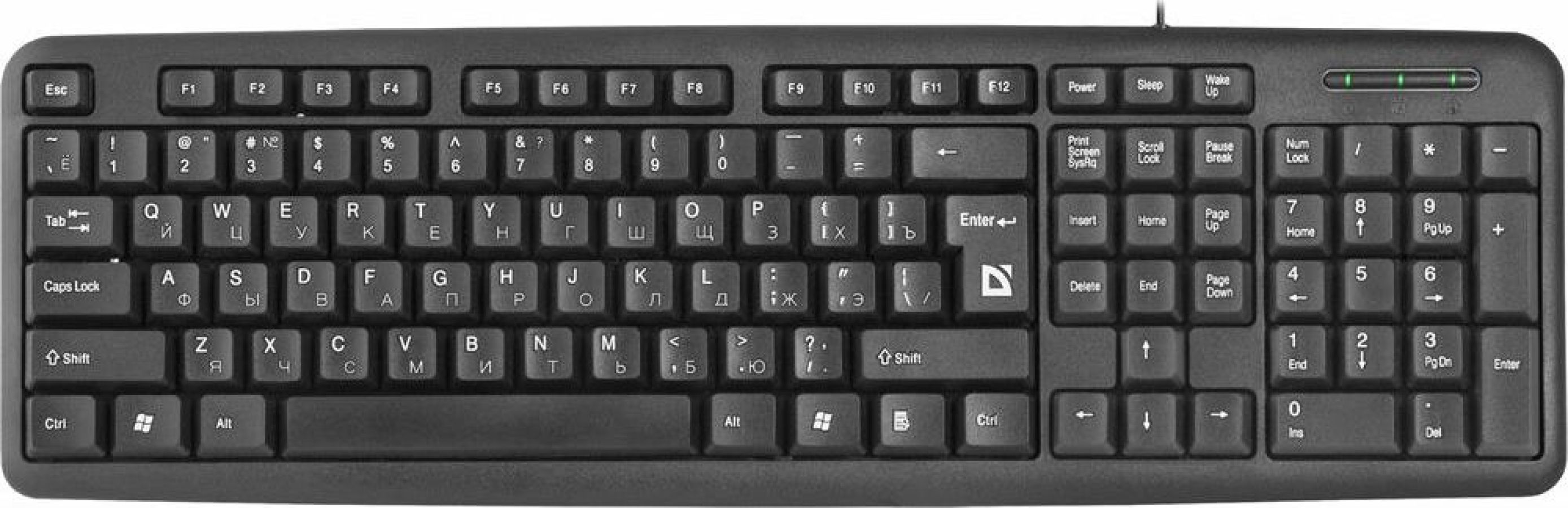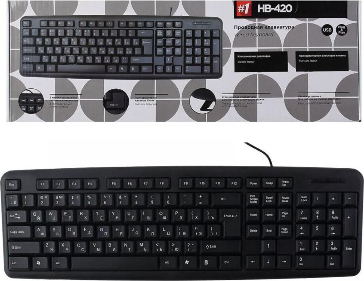 Клавиатура проводная, интерфейс подключения USB, количество дополнительных клавиш (функций) 3 клавиши управления питанием, дизайн клавиатур классический, тип клавиатуры - мембранная
