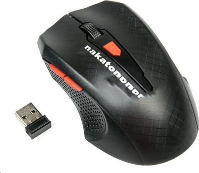 Мышь беспроводная, интерфейс USB, оптическая (видимый диапазон), количество кнопок - 5, прокрутка - вертикальная.динамически изменяемое разрешение - 400/1200/1600 dpi, радиоинтерфейс 2.4 гГц, радиус действия до 10 метров, материал корпуса - черный пластик, фактурное тиснение в верхней и боковых частях.