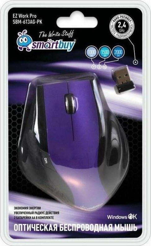 Мышь беспроводная , оптическая, количество кнопок - 5 + колесо-кнопка, изменяемое разрешение - 1000 / 1500 / 2000 dpi, интерфейс подключения: USВ, радиус действия - 10 м.