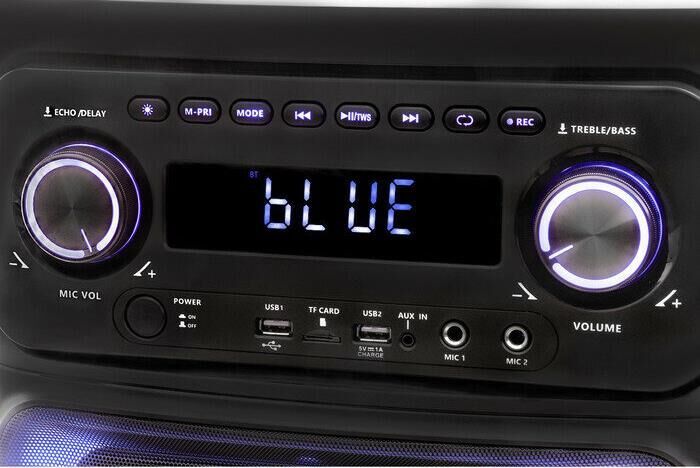 Номинальная выходная мощность, Вт. 2 x 90 Динамик 4 x 10” Твитер 2 x 3” Поддержка Bluetooth есть (с поддержкой A2DP) Дальность связи Bluetooth, м. 10. Радио-тюнер есть (FM) Функции Функция караоке есть Регулировка низких и высоких частот есть + эхо-эффекта канала микрофона Поддерживаемые форматы Аудио форматы MP3/WMA/FLAC/WAV/APE/AAC Поддерживаемые носители Карта памяти TF Индикация Подсветка есть, многоцветная отключаемая. Вход для микрофона есть, 2 Линейный вход есть USB разъем 2.