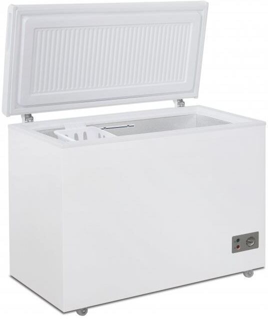 Морозильный ларь; Общий объем, л: 330; Цвет: Белый; Тип двери/крышки: Глухая; Тип компрессора: Инверторный; Количество компрессоров: 1; Минимальная температура в морозильной камере: -18 °C; Количество корзин: 1; Сигнализация повышения температуры в морозильной камере; Управление: Механическое; Режим: "Быстрая заморозка"; Суточный расход электроэнергии, при температуре окружающего воздуха 24°C: 73 кВтч; Температура хранения не выше: -18 °C; Мощность замораживания: 19 кг/сутки; Размораживание морозильной камеры: ручное; Климатический класс: N, ST; Максимальный уровень шума: 40 дБ; Автономное сохранение холода: 16 ч; Класс энергоэффективности: А; Номинальная потребляемая мощность: 40 Вт