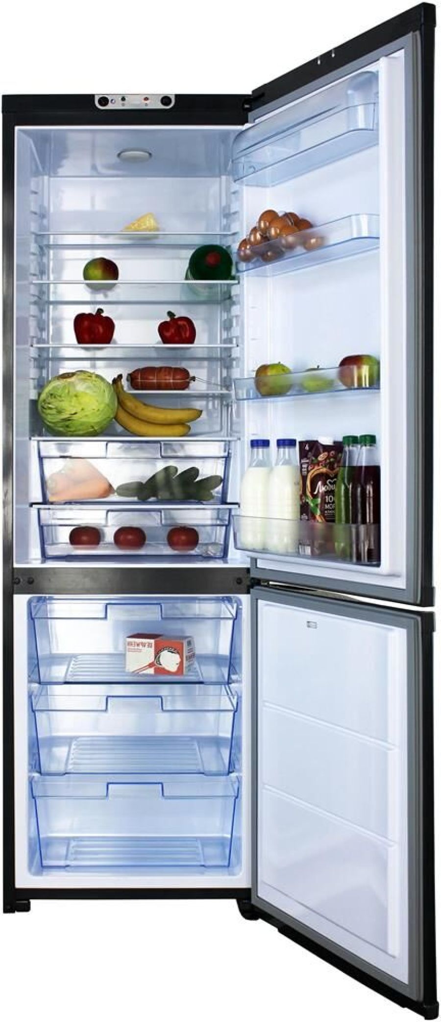 Габариты ВхШхГ, см.: 190х60х61,5; Цвет графит; Материал дверей: стекло; Общий объем, л: 365; Объем холодильной камеры, л: 245; Объем морозильной камеры, л: 120; Класс энергетической эффективности: A; Климатический класс: N; Управление: электромеханическое; Размораживание холодильной камеры: капельная система; Размораживание морозильной камеры: ручное; Потребление энергии: 295 кВт/год; Хладагент и его количество: R600a, 50 г; Производительность замораживания, кг/сут: не менее 5; Уровень шума, дБ: 41; Температура в МК (НТО), °С: не выше -18; Температура в ХК, °С: не ниже 0; Температура в ХК, °С: не выше 10; LED освещение; Перевешиваемые двери
