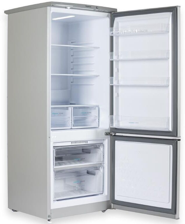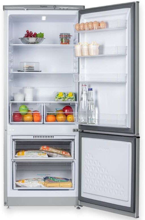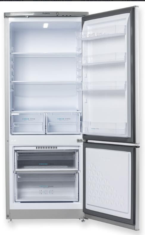 Двухкамерный холодильник с нижней морозильной камерой; Габариты 145x58x62см; Объем: 240/180/60л; Расположение морозильной камеры: нижнее; Класс энергоэффективности: A; Оттаивание холодильной камеры: автоматическое; Материал полок: стекло/пластик; Количество ящиков в холодильном отделении: 2; Количество полок в холодильном отделении: 3; Минимальная температура в морозильной камере: +18 °C; Суточный расход электроэнергии, при температуре окружающего воздуха 24°C: 82 кВтч; Температура в отделении для хранения свежих пищевых продуктов: от 0 до 8 °C; Размораживание морозильной камеры: ручное; Цвет: металлик; LED освещение; Механическое управление; Климатический класс: N; Максимальный уровень шума: 42 дБ; Количество компрессоров: 1; Возможность перевешивания двери