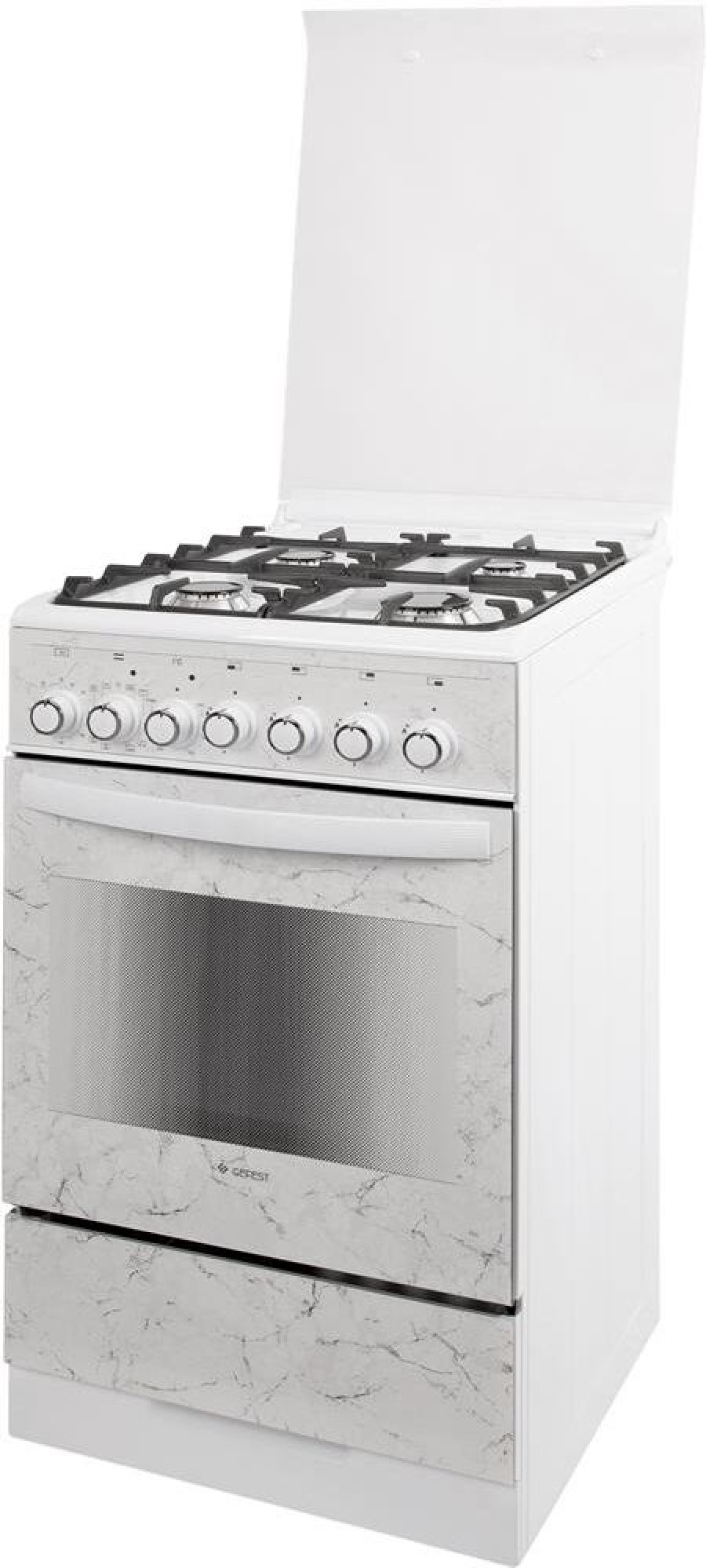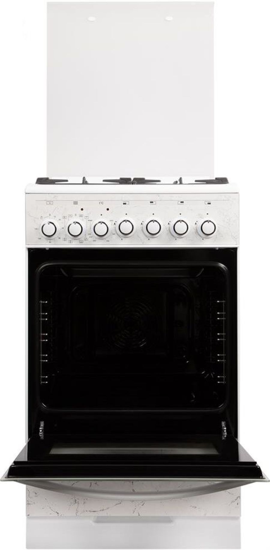 Габариты, ШхГхВ, см 50х58,5х85 * Цвет модели Белый * Дизайн Мрамор * Материал варочной поверхности Эмаль * Материал решеток варочной поверхности Чугун * Крышка плиты Стеклянная * Газ-контроль горелок стола * Электророзжиг горелок стола Розжиг встроен в ручки * Количество газовых горелок варочной поверхности 4 * Количество стекол в дверце духового шкафа 2 * Тип духового шкафа Электрический * Гриль с вертелом * Ускоренный и усиленный нагрев с конвекцией * Тип направляющих духового шкафа Съемные проволочные * Ящик для посуды и принадлежностей Выдвижной ящик * Таймер Электромеханический * Внутреннее освещение духового шкафа Одинарное * Контроль температуры духового шкафа Термостат * Вертел * Жаровня * Класс энергетической эффективности A *