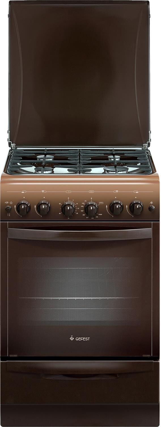 Габариты, ШхГхВ, см: 50x58.5x85; Цвет: коричневый; Дизайн: классический; Ширина, см: 50; Тип духовки: газовая; Мощность горелки духовки, кВт: 2,35; ТЭН-гриль: 1,2; Фасад: эмалированный; Варочная поверхность: эмалированная; Решетки стола: чугунные; Крышка стола: металлическая; Присоединительная резьба газопровода: G 1/2; Класс энергоэффективности: A; Номинальная потребляемая мощность электроэнергии, кВт: 1,115-1,220; Таймер: механический; Газ-контроль духовки; Электророзжиг духовки: кнопка на панели; Электророзжиг горелок стола: кнопка на панели; Гриль: электрический; Вертел с электроприводом; Подсветка духовки: одинарная; Направляющие духовки: съемные проволочные; Терморегулятор (термостат); Ящик для посуды и принадлежностей: выдвижной ящик; Ножки регулировочные; Сетевой шнур и вилка: в наличии; Доводчик «Soft-Close»