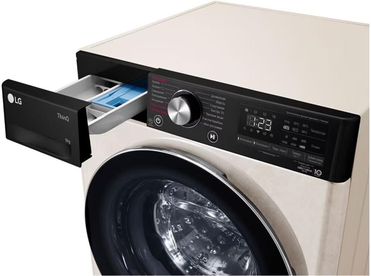 ШхГхВ: 60х56х85 см * Цвет бежевый * дозагрузка белья через основной люк * загрузка: 9 кг * отжим при 1400 об/мин * Количество программ 14 * Функция пара Steam™ * класс энергопотребления: A * электронное управление * Wi-Fi и управление через смартфон с приложением LG ThinQ * Прямой привод * Инверторный двигатель * защита от протечек * Контроль дисбаланса * Контроль за уровнем пены * защита от детей *
