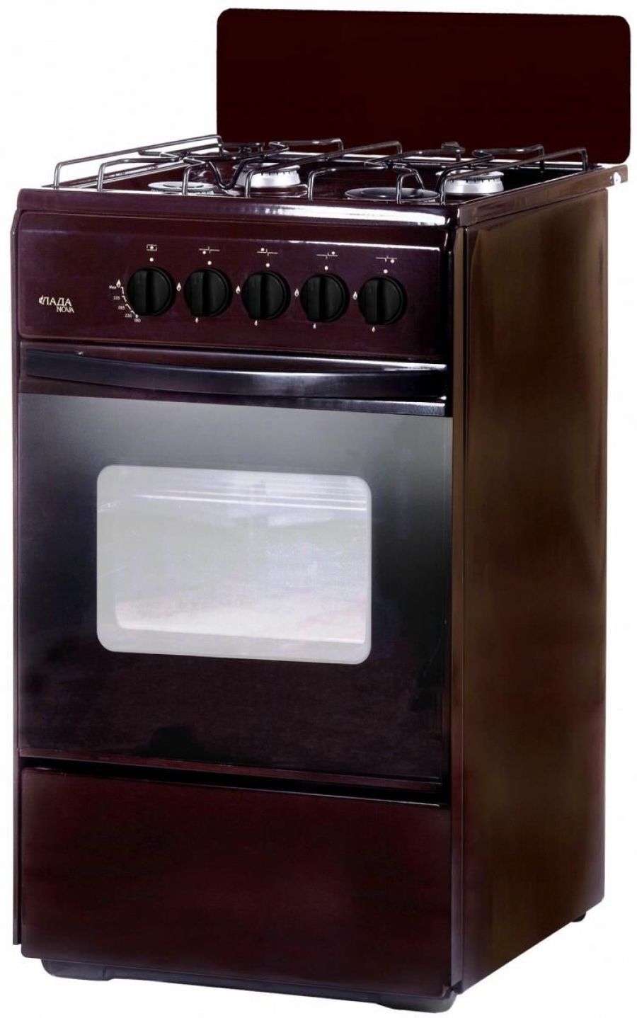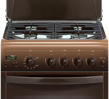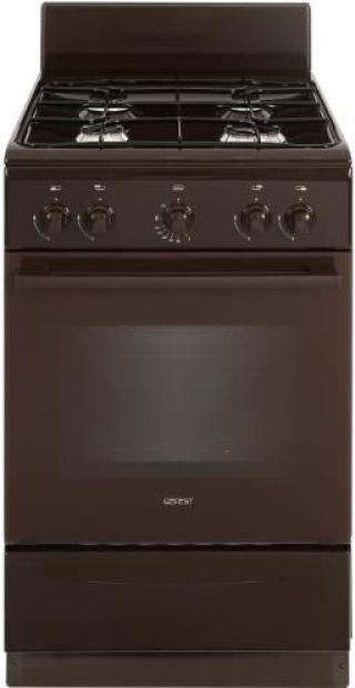 Габаритные размеры, см 50 х 60 х 85 * Тип плиты газовая * Цвет коричневый * Объем духовки 50л., Двойное стекло дверцы духовки * полный газ-контроль * Материал эмаль * 4-х горелочная * щиток, проволочная решетка стола, хоз. отсек, решетка духовки, жаровня *