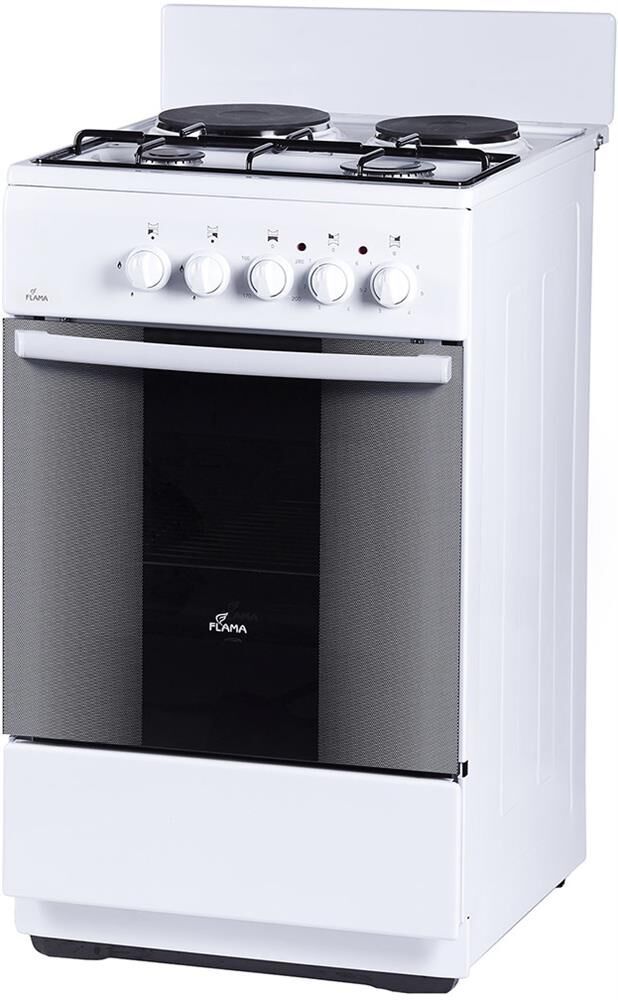 Цвет: белый, Размеры: Ширина: 50 см, Глубина: 60 см, Высота: 85 см, Материал: сталь, 2 газовые горелки+2 электроконфорки, щиток, электрическая духовка, профильная решетка, хоз.отсек,Тип духовки: электрическая, Объем духовки: 50, вес: 33кг