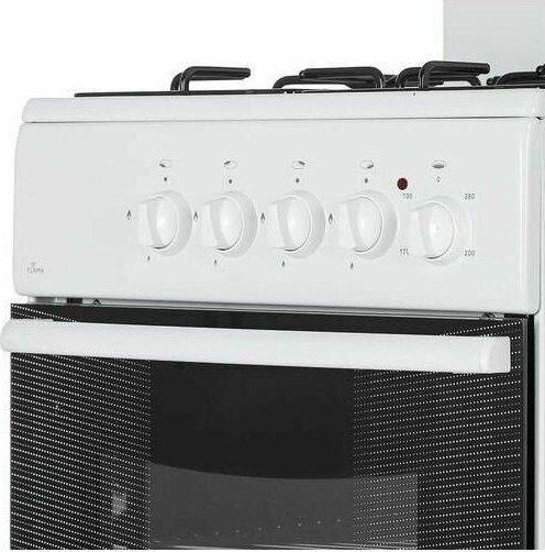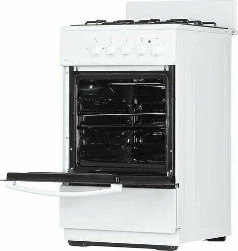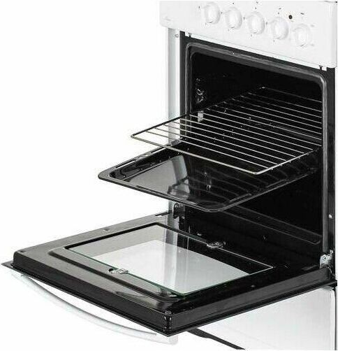 (ВхШхГ)85х50х60см. Цвет белый.Вес 32кг. Объем духовки 50л. Духовка электрическая. Элементы комфортности: щиток, подсветка духовки,профильная решетка стола,хоз. отсек, решетка, жаровня.