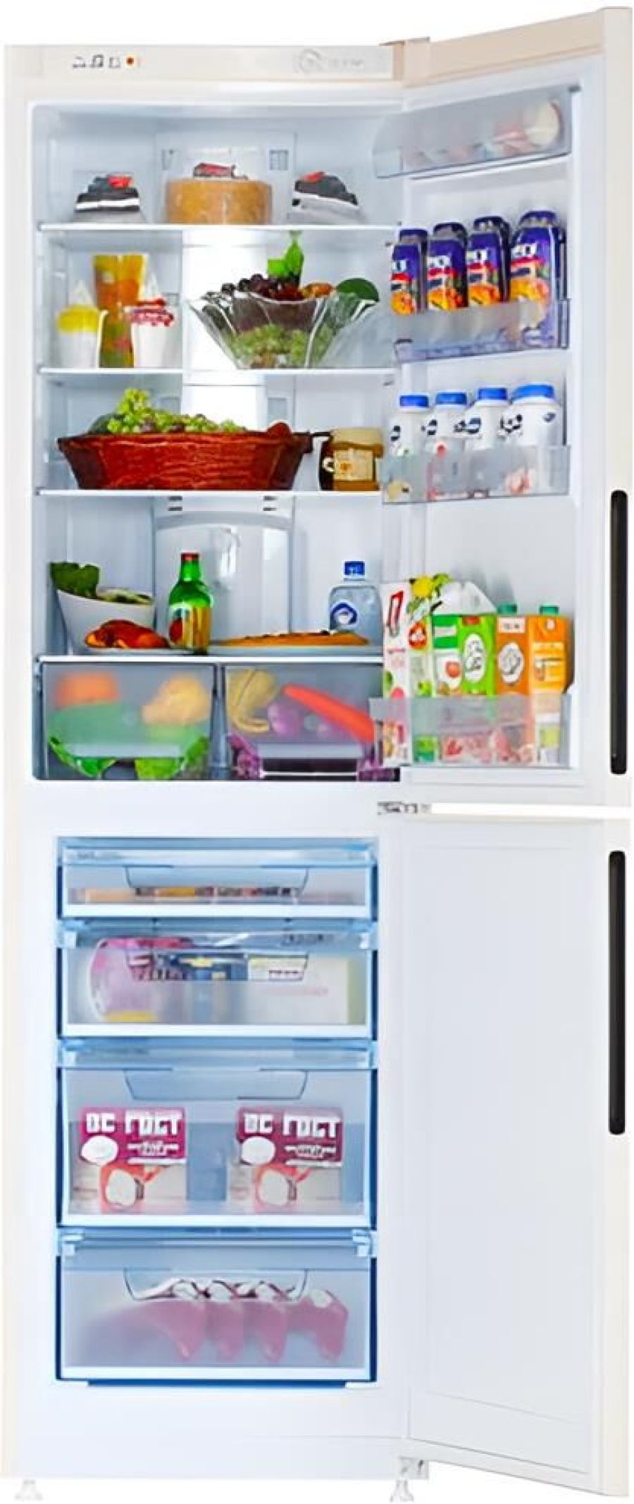 Габариты (ШxГxВ) 59,5x63x202.5 см Вес 74 Общий объем 344 л Объем холодильной камеры 220 л Объем морозильной камеры 124 л Номинальный потребляемый ток, А 0.8 Низкотемпературное отделение (НТО) Система оттаивания морозильной камеры авто Температура в морозильной камере, °C -18 Замораживающая способность, кг/сутки 10,5 Холодильная камера Система оттаивания холодильной камеры авто Температура в холодильной камере, °C 0 ... 10 Количество полок/сосудов в камере, шт. 4 Количество полок на двери, шт. 4 Материал полок в камере стекло Освещение холодильной камеры LED лампа Эффективность и энергопотребление Класс энергоэффективности A Суточный расход электроэнергии, кВт/ч 1.03 Частота, Гц 50 Корректированный уровень звуковой мощности, дБA 40 Цвет бежевый